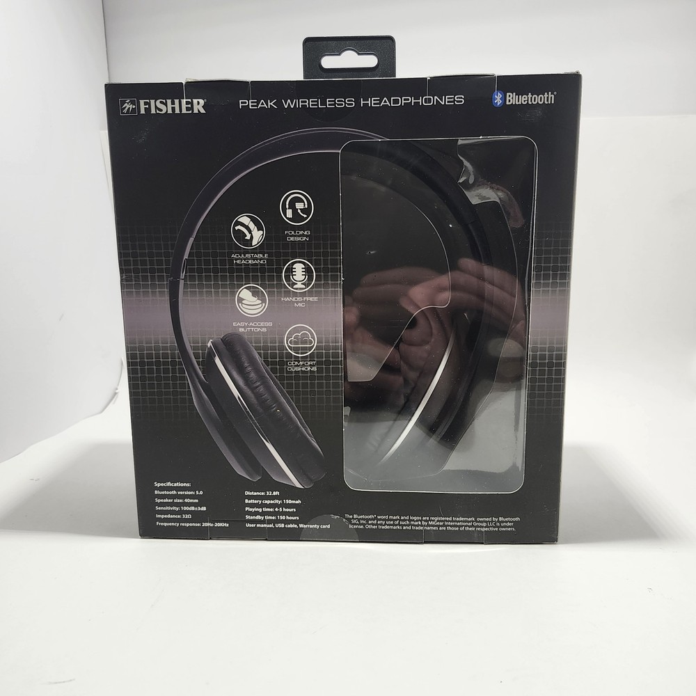 The Fisher Peak Wireless Headphones are Bluetooth-enabled over-the-ear headphones designed for a comfortable fit with a headband form factor and double earpieces. These headphones feature built-in microphone for hands-free calling and are compatible with various devices thanks to their Bluetooth technology. Manufactured in the United States, the Fisher Peak headphones offer a sleek black color and a wireless design for convenience on the go.