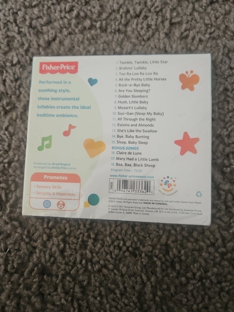 Enjoy the soothing melodies of "Lullaby Baby: Tender Lullabies [Digipak]" by various artists. This CD graded as Mint (M) comes in its original cardboard sleeve and features a tender lullaby style that is perfect for children. The digipak format adds a modern touch to the classic CD design. The CD contains 72 minutes of English language lullabies that are sure to charm your little one. The inlay and case conditions are also rated as Mint (M), ensuring a pristine listening experience. This Fisher-Price CD is a must-have for any child's music collection. Pre-owned but new on original Cellophane packaging. Shipped with USPS Media Mail.