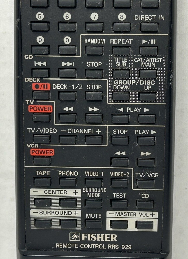 Fisher RRS-929 Black Wireless Remote Control For RS-929 Stereo Receiver Works Tested and works. OEM. No battery corrosion. Please view all photos.