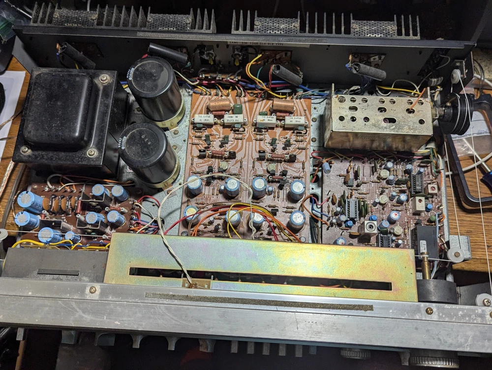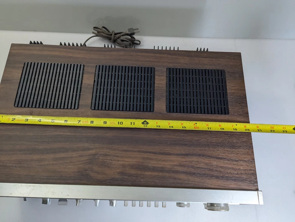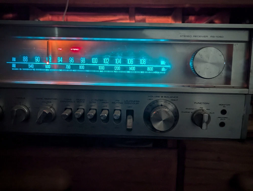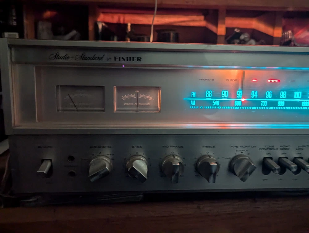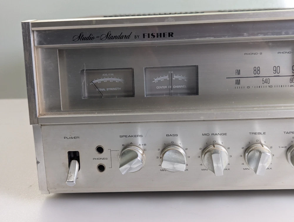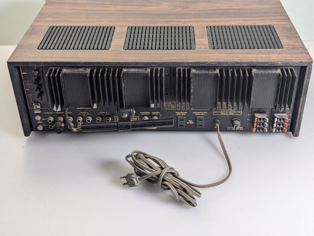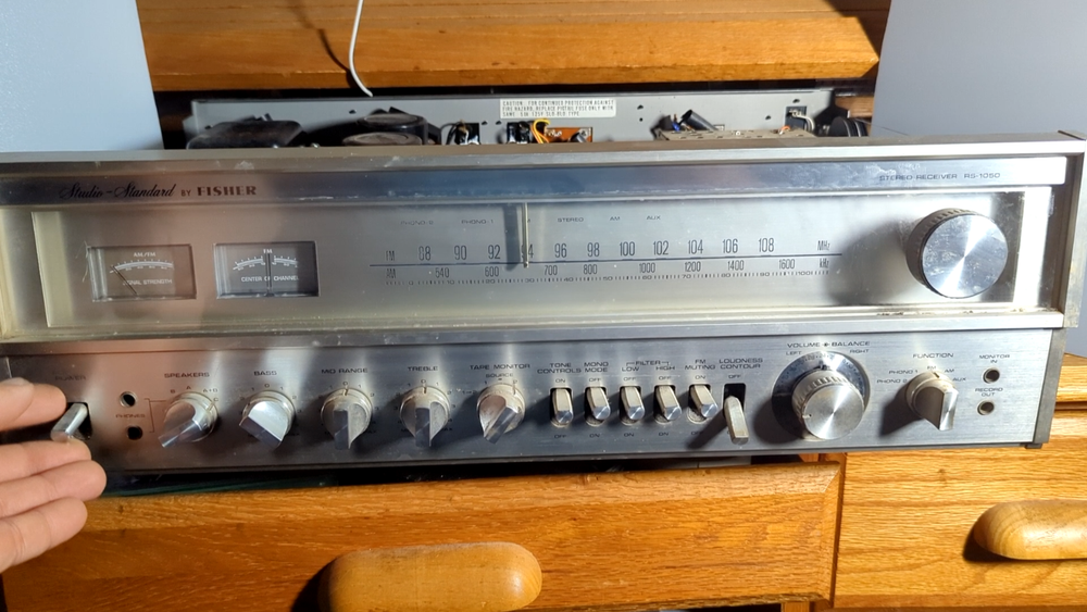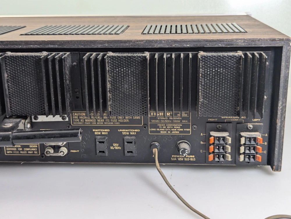 Fisher RS-1050 Stereo Receiver Tested Working Silver 1978 Japan Vintage 60 WPC Excellent cosmetic condition. All functions and inputs are working. Tuner strength meters work but the backlight bulbs are out as shown in the Video. The tuner dial and tuner face light up All knobs and toggles are present. A few scuffs and dings here and there (see pics). Minimal wear to brushed aluminum face. The vinyl-wrapped woody cover is in good condition (One hole where the screw goes, the wood es not strong ). I tested all of the inputs they are working properly, all of the output speakers work Knobs are smooth and functional but they need a good cleaning, Volume works but it may need a TCL spry for cleaning Sometimes the black dial is crackly, but the main Volume is working properly I did not test any of the front 1/4 outputs/inputs(I didn't think it was necessary ) Overall a very nice Vintage unit that you don't find every day It is a Beautiful baby for you but needs a good cleaning I only clean the inside which is why I open it up the outside I am scared to damage something(I did it before) so I leave it to the next owner There are some scuffs and scratches scattered about. It will come exactly as shown, so please see the photos! There could be times when my description is not that accurate, I do my research, and it is best to describe items so please look at the pictures they describe the item better than words.!