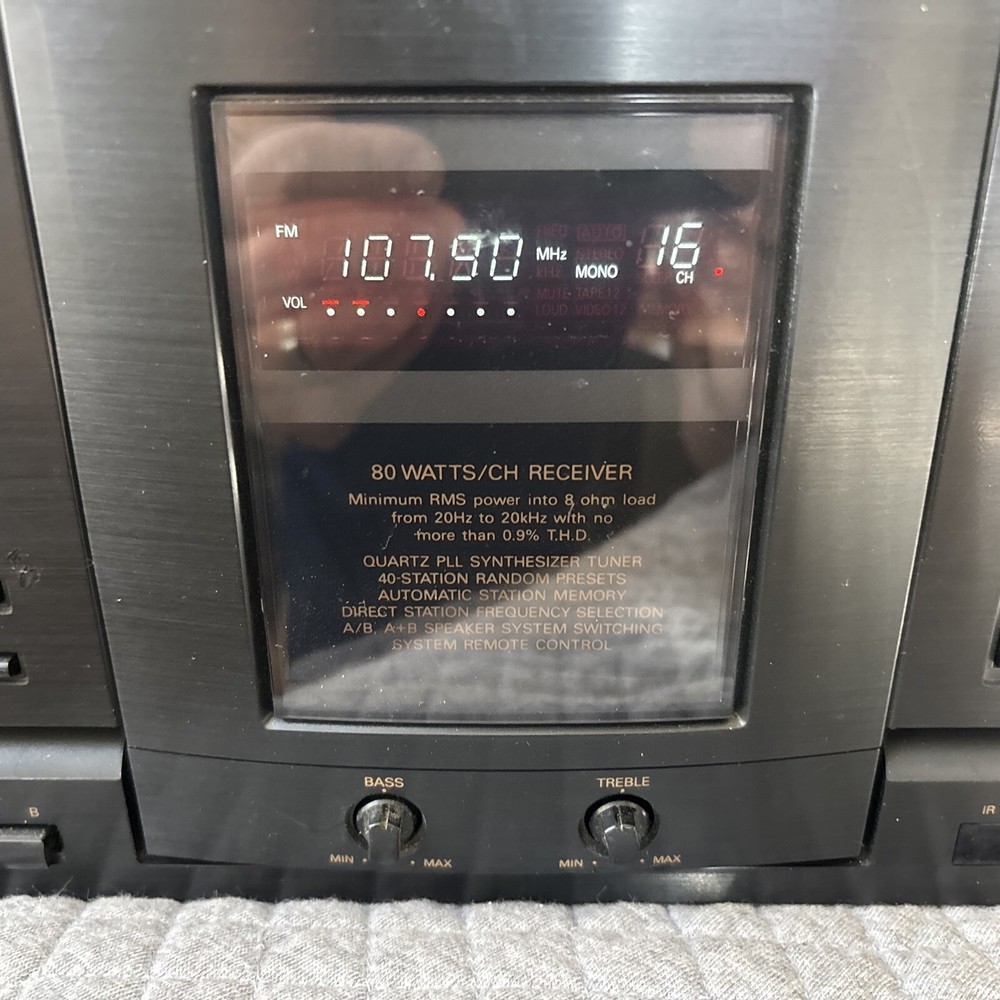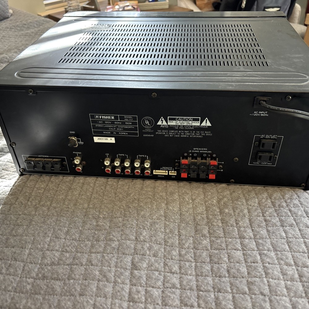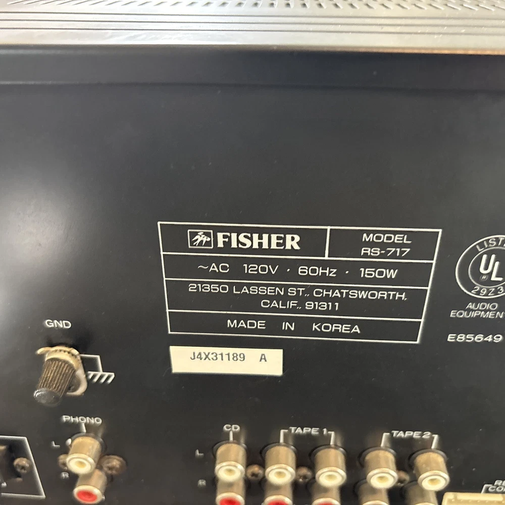 Experience your favorite radio stations with the Fisher RS-717 AM/FM Radio Home Stereo Receiver Amplifier. This quartz tuner is a rare find, originating from Korea and featuring both AM and FM supported modes. The unit comes in a sleek black color, making it a stylish addition to your home audio system. With a powerful 150W output, this Fisher stereo receiver offers a range of audio inputs including Phono/Turntable, Stereo L/R RCA, and Multi-Channel RCA. The unit also includes a headphone jack and raw cable speaker jacks for easy connectivity. The Fisher RS-717 is perfect for any audio enthusiast looking for a reliable and high-quality receiver combo feature.