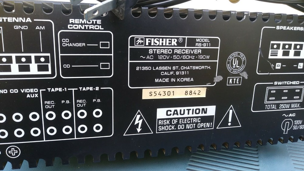 Parting Out good working Fisher RS-911 AM/FM Stereo Receiver Please Write what part you need. Our goal is your 100% customer satisfaction We Do Not consider our transaction complete, until we know You are fully satisfied with your item! If you are satisfied with your order, please leave us positive feedback If you are not 100% satisfied, please contact us right away We'll solve any problems with the order that are the results of our error to ensure your 100% satisfaction. We're only human after all Track Page Views With Auctiva's Counter