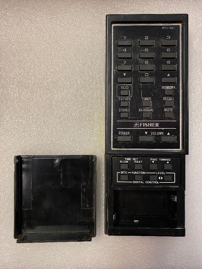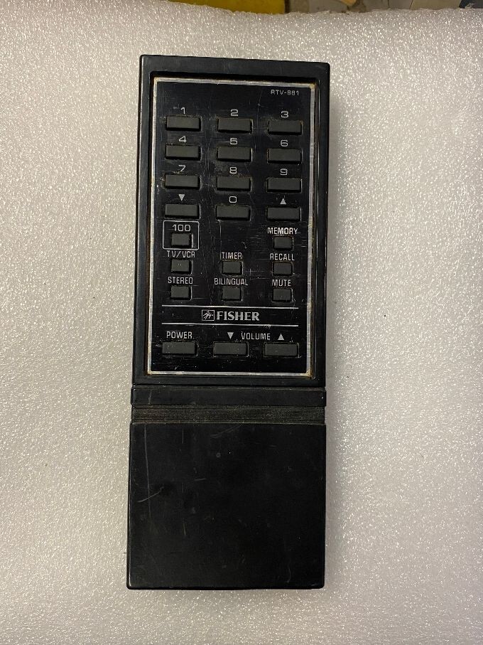 This Fisher RTV-881 remote control is compatible with Fisher brand devices and has a wireless range of 5-10 meters. It is black in color and does not come with batteries included. The remote has been tested and is in working condition. It is an old stock item, As you can see in the pictures the remote has a few scratches, but still functions as intended. This unit is perfect for those who need a replacement remote control for their Fisher TV, VCR or stereo system. a-8 sherwood room