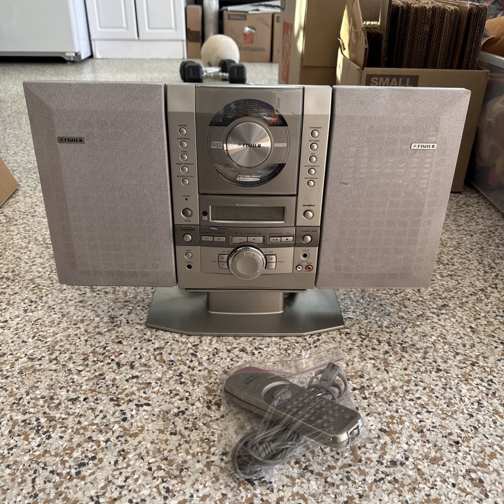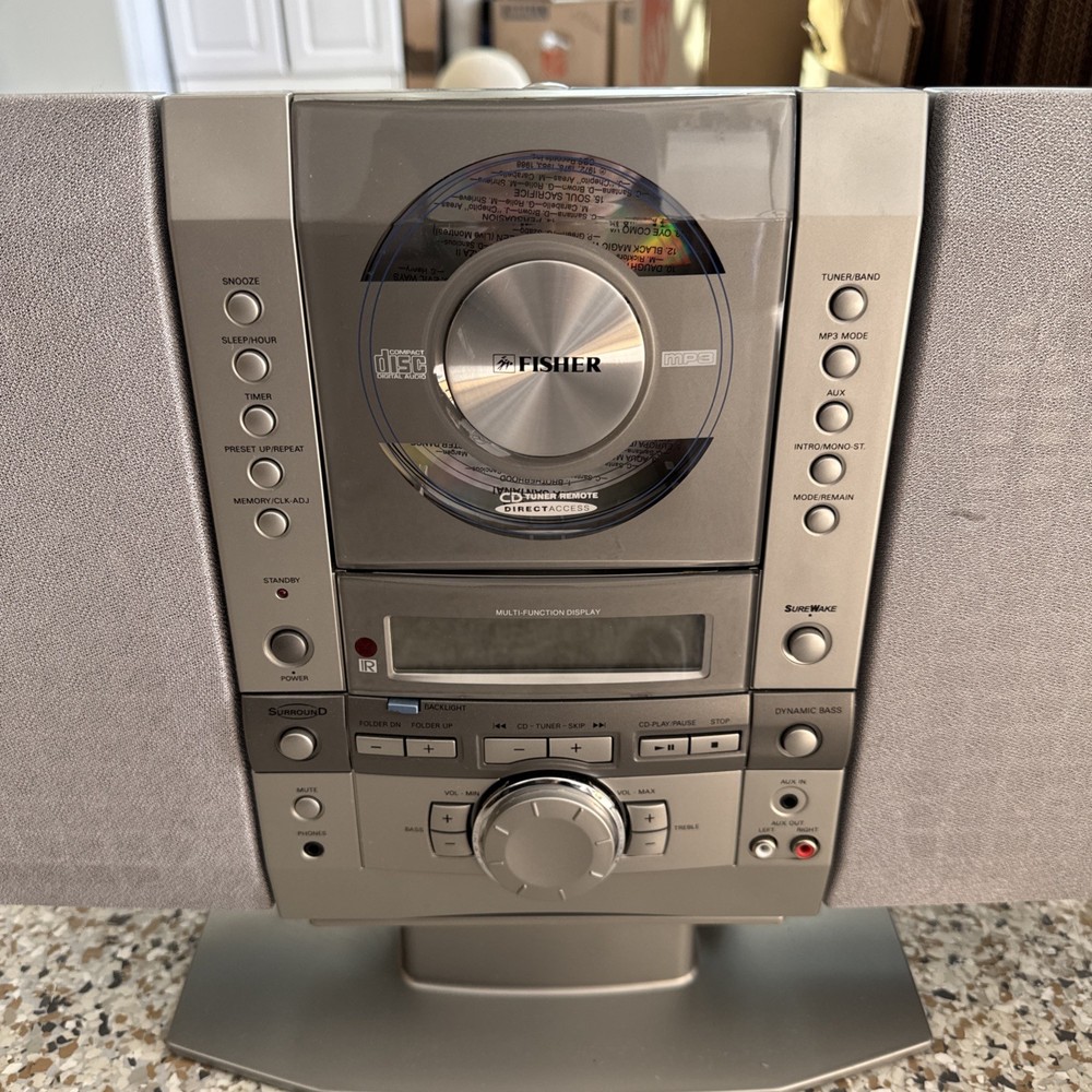 The Fisher SLIM 1510SL Portable CD AM/FM Stereo Radio is a versatile home audio device that offers a compact and sleek design, perfect for any room in your home. With its detachable speakers and remote control, you can easily customize your listening experience. Enjoy listening to your favorite radio stations with AM/FM capabilities or load up your favorite CD for a high-quality audio experience. This CD player by Fisher combines style and functionality, making it a great addition to your audio setup. Plug this thing in and the sound works radio works but can’t get the displayer to play CDs. Power on. Does come with the original remote, but the remotes clips are broken, so it doesn’t stay together does have the original cord