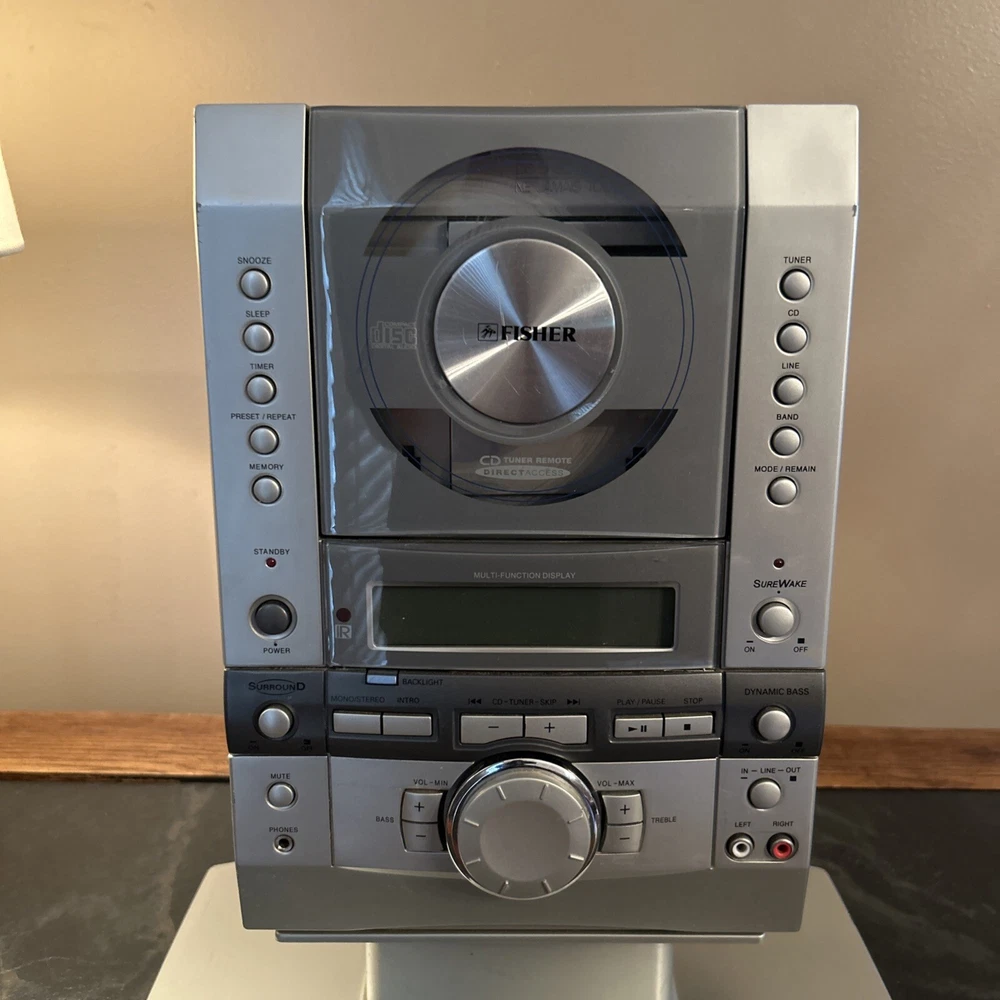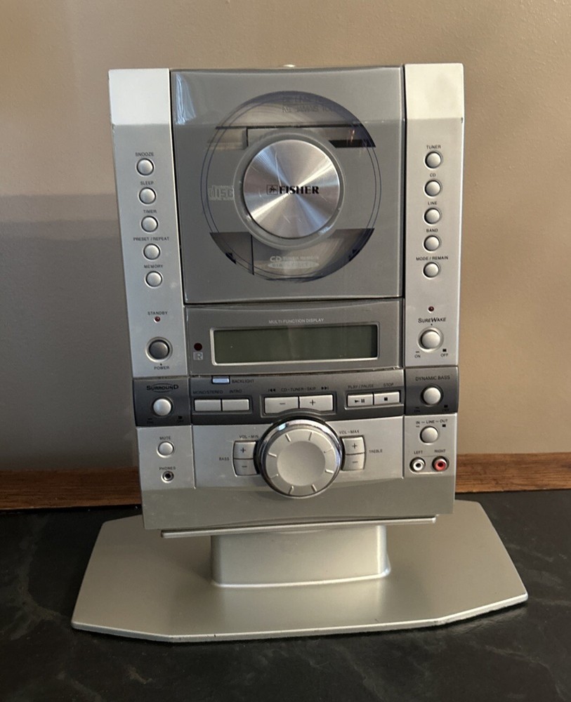 The Fisher SLIM-1500 AM FM Radio CD Player Stereo is a compact and sleek unit featuring a silver color design. With a CD player capability, AM/FM radio band, and headphone jack for audio output, this stereo is perfect for home audio setups. The slim design and raw cable speaker jacks make it easy to set up and use, while the Fisher brand ensures quality and reliability. Ideal for a variety of audio needs, this stereo is a fast shipping item that does not include speakers. I did not retest. Out of batteries. It worked last time I used. So let’s sell AS IS FOR PARTS JUST TO BE SAFE. I’ll ship fast and safe. Thank you.