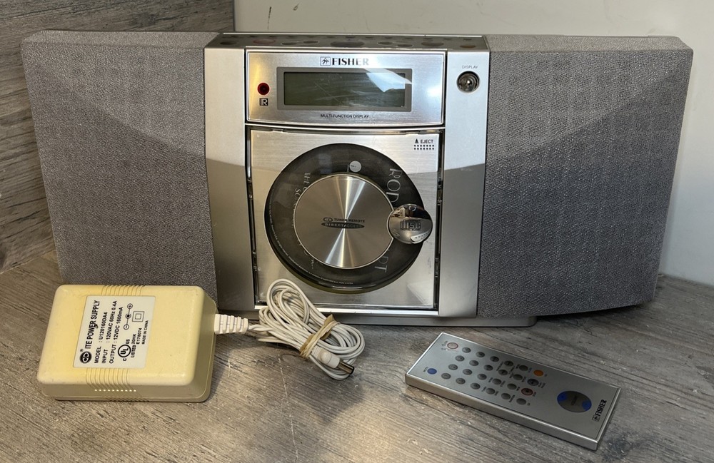The Fisher SLIM-1800 CD Player AM/FM Tuner Compact Stereo Radio is a sleek and portable unit perfect for playing your favorite CDs and listening to AM/FM radio stations. This compact stereo radio comes in a modern silver color, making it a stylish addition to any home audio setup. With a manufacturer warranty and easy-to-use remote control, this Fisher CD player offers convenience and quality for your listening pleasure.