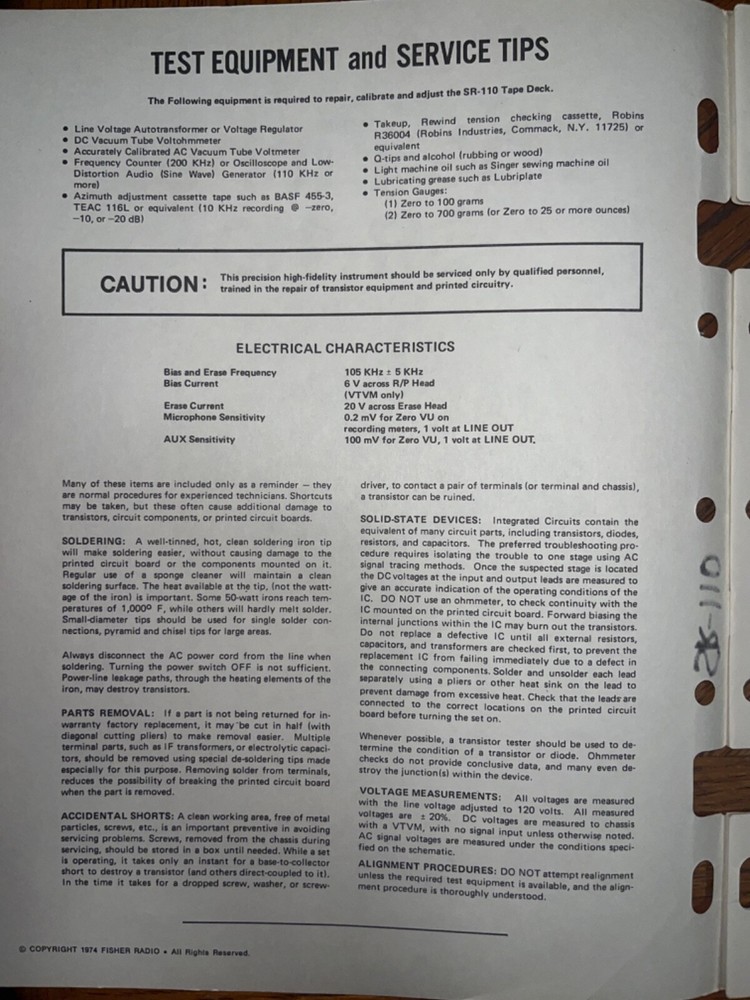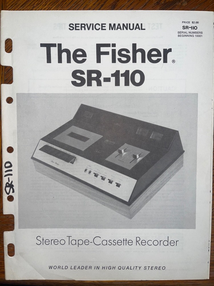 I am selling an Original Fisher SR-110 Stereo Cassette Recorder Service Manual.. Item was used at a repair center .. Item will be shipped USPS First Class or Media Mail..