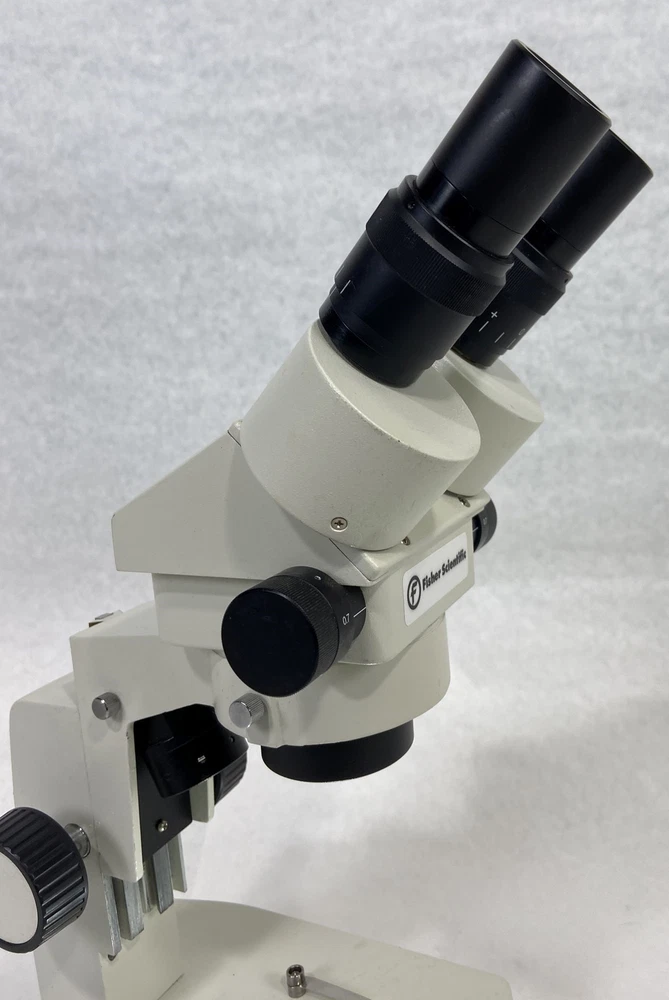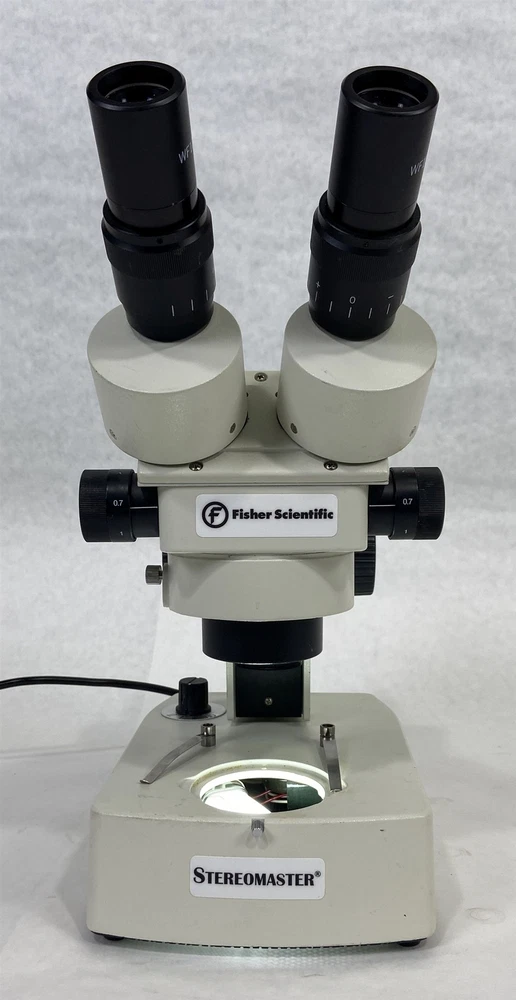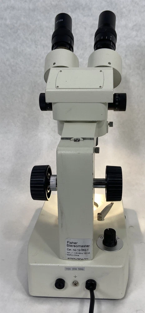 Questions? Contact us at QuickStopAuctions Fisher Scientific StereoMaster Cat. 12-562-1 0.7x-4.5x Stereo Zoom Microscope 3 Please read the entire description. Please refer to the pictures provided as they are a vital part of this listing and show more detail on the condition of the item. Only those items shown in the photos will be included in the auction. Photos are of the item you will receive, unless stated otherwise. Cosmetic Condition The microscope is in fairly good cosmetic condition: - It has light scuff marks, scratches, and general wear from use. Please see the photos for more detail. No other parts or accessories are included. Only that which is shown in the photos will ship. Testing We tested the microscope by plugging it in and powering it on. Both of the illuminator lamps (underneath the stage plate and above the stage) power on. The intensity adjustment works. The focus, zoom, and diopter adjustments work properly. We had no issues zooming or focusing onto materials placed onto the stage for testing. Optically, the microscope is in good working condition. However, we did notice that the zoom knob gives a little resistance (almost as if overcoming a smooth bump) when rotating to the 0.7x position. Also, the microscope is missing a stage plate (approx. 2-3/4" diameter). This is the full extent of the testing performed. The microscope is being sold as-is. Return Policy If you receive the item not as described you will have 14 calendar days to return it. To be eligible for a return, your item must be in the same condition that you received it (this includes new and sealed items). Once we receive your return, we will inspect the item and notify you of the status of your refund. Shipping Items are shipped via USPS or UPS. Items will be shipped out, at the latest, the day after payment is received. Inventory ID: 45854