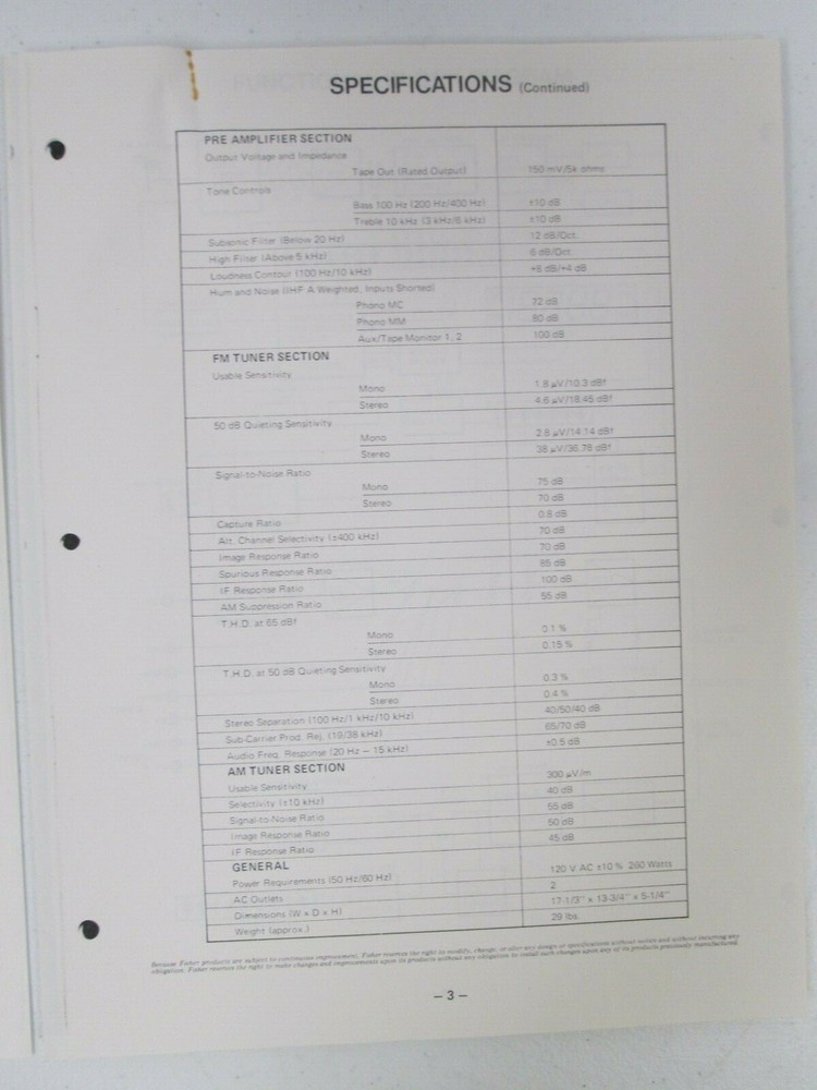 Stereo receiver user manual was as described - original, little used, and in excellent condition. Manual was shipped quickly, and was packaged in plastic to prevent wetness, protected from folding using cardboard, and enclosed in a vinyl mailer. Excellent transaction!