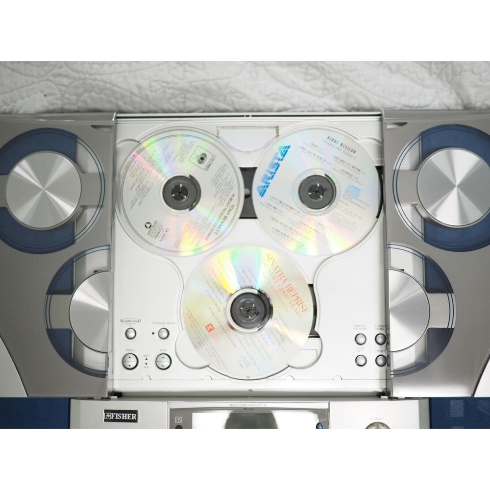 <![CDATA[<div>Experience exceptional audio performance and timeless design with this rare Fisher Slim 2000 Panel Stereo. Celebrated for its impeccable quality and striking blue finish, this versatile system offers the flexibility to be wall-mounted or to use a built-in stand —perfect for adapting to any space. Featuring a built-in 3CD changer and remote control for effortless operation, it delivers dynamic sound with a retro flair. A must-have for collectors and vintage audio aficionados who appreciate both style and performance. Exterior condition is very good with light wear. Remote and wall mount are as well. Everything functions on the radio except for the automatic disc door opening. The disc door can still be opened manually, but does not open automatically. Includes radio, remote, antenna, power cord, wall mount and 3 CDs shown in pics. FREE shipping!
