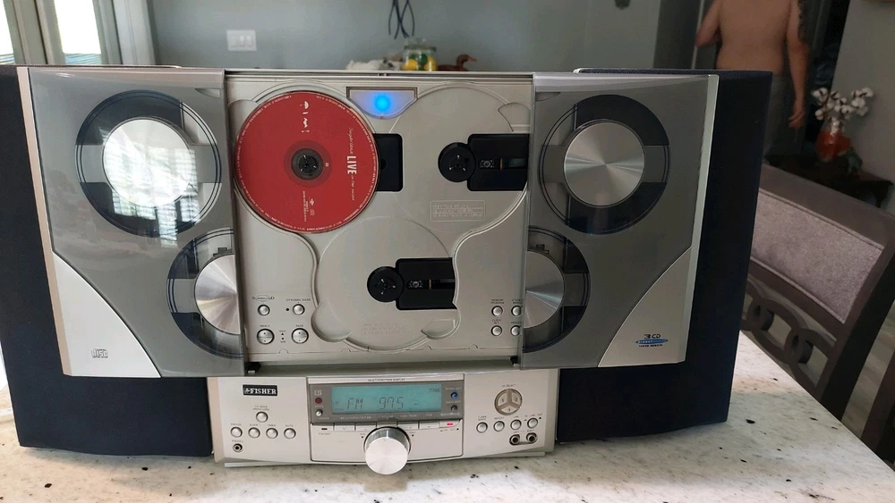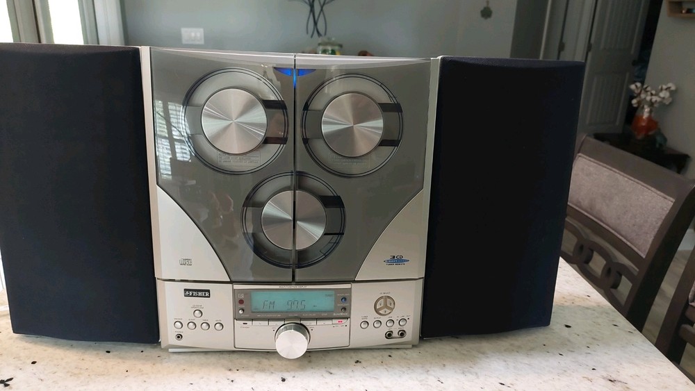 ### THE DOORS DON'T WORK, YOU HAVE TO OPEN MANUALY, AUTOMATIC DOORS DON'T WORK, YOU HAVE TO PUSH THEM OPEN####Enjoy your favorite CDs and radio stations with the Fisher Slim 2000 Panel Stereo. This compact and sleek device comes with a 3CD changer, allowing you to play up to three CDs at once. The stereo also has AM/FM band capabilities, so you can tune in to your preferred radio stations. The silver and black color scheme adds a touch of elegance to any room, and the Fisher Slim 2000 model is perfect for those who want a reliable and compact stereo system. Please note that this listing includes only the stereo and CD changer, and does not come with a remote. Doors open manually.