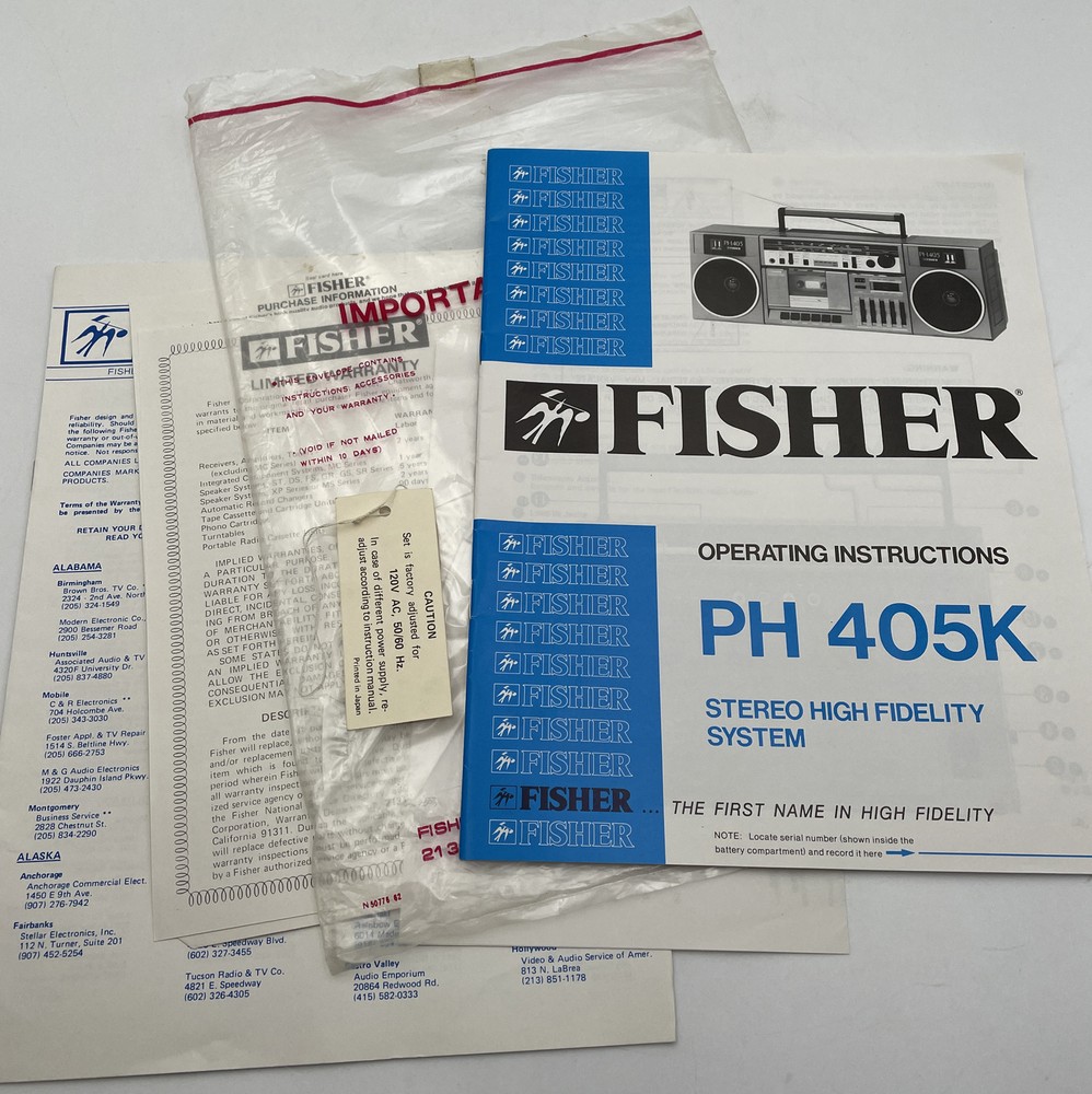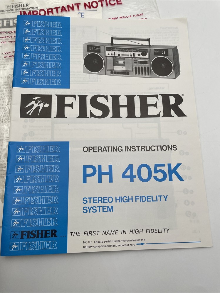 We have for sale a vintage Fisher Stereo Boombox model PH-405K Operating Instructions Owners Manual. What you see in the pictures is exactly what you will receive. Please look at all pictures closely for details, thanks for looking!