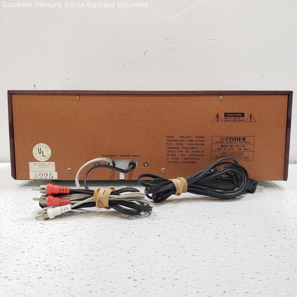 Our mission is to provide vocational and educational opportunities to eliminate barriers to employment, strengthen communities and help peple in need reach their full potential through the power of work. DESCRIPTION Up for Sale Is For parts or not working Fisher Stereo Cassette Deck CR-113 - Parts or Repair This item is in used condition. Please refer to the photos for completeness, appearance, and details. Item would play the tape, but when switching to the other side of the tape, it would struggle to play. Able to forward and rewind. No further testing. SOLD AS IS. Brand Fisher Model Cr-113 *Please see additional pictures & read full description below for possible condition notes or issues.* Please check the pictures BEFORE purchasing. If you have any questions on confusion, please ask BEFORE you purchase. Please, read the following very carefully BEFORE you make any purchase. Our Mission: Goodwill Industries of Ventura and Santa Barbara Counties serves the community by helping people increase their economic independence through training, education, and employment. Thank you for your support of our Mission! Please read and understand the full description, ask all questions prior to bidding. We encourage you to "Get Estimated Shipping and Handling" by clicking on the link above. For service, please enter a Support Ticket via your "Customer Service" tab. Customer Service Hours of Operation: Monday through Thursday 8:00 am - 3:00 pm Pacific Standard TimeItems are sold AS-IS, as described. Unless otherwise noted, items are NOT tested or guaranteed to function. No artwork items have been authenticated. ALL jewelry grab bags and large jewelry lots are Sold AS IS, NO REFUNDS or exceptions. Items are normally in used condition unless noted and donated to Goodwill Industries of Ventura and Santa Barbara Counties, Inc. in order to continue our mission of helping those with disabilities and other barriers find employment. SHIPPING We accept payment only through PayPal (Verified/Confirmed Address only). If you have an unconfirmed address with PayPal you will need to provide confirmed address to PayPal. In some cases we will allow local pickup. Please send an e-mail though E-Bay for inquiry. We do charge $4 and reserve the right to charge more for larger orders. Shipping charges are not refundable under any circumstances. Sellers are not responsible for service transit time. Transit times are provided by the carrier, exclude weekends and holidays, and may vary with package origin and destination, particularly during peak periods.Please allow 2-4 business days after payment is cleared for your order to be shipped. Most order ship within 24 hours. You are responsible for return shipping. Unless otherwise stated above, you may return a part for a refund within 3 days of receiving it.Items generally ship within 6 business days after payment clears. We ship FedEx Ground only. Due to the odd dimensions of certain items, FedEx may charge more for shipping oversize items and calculate that into shipping weight as a "dimensional weight." Paid for items will be shipped as specified within the order and will not be able to be modified or combined after payments have been made.We DO NOT offer Pick-up Service, All orders must be shipped. RETURN POLICY We do NOT offer partial refunds. If you are not pleased with your purchase, contact customer service by email or telephone within 7 days of delivery of your item to arrange for its return and a refund of the original purchase price, less a restocking fee if applicable. Returns will not be accepted without prior authorization you must obtain a return authorization number from our customer service department prior to sending the item back. Please note that we do not refund shipping and handling charges. Request for return must be reported within 7 days of receipt, and the returned merchandise should be postmarked within 14 days of the original shipment. A restocking fee may be charged if your product is not returned in its original condition or is missing packing material, manuals, accessories or parts. Please, read the following very carefully before you make any purchase All of our parts are pulled from working units and Tested Working carefully by Certified Technicians, unless they are listed As Is or Non Working. Before purchasing any part, please, make sure it is compatible or matches your old part and you are confident that by replacing this part will fix the issue. Please, do not buy if you are just guessing or not sure. Also, most of laptops, Mac and LCD's replacement require lot of experience. If you bought the wrong item, we will be happy to take it back but you must send it back to us within 3 days and the item must be in the same/original condition, must match the serial number on the invoice and our warranty sticker must have not been tempered with. There could be many possible reasons for your system/device to not work properly even after replacing a part. It is hard for us to identify the exact reason(s) unless we have the whole system/device here for an inspection by our technician. Please, make sure you agree with and understand the above statements before placing your order. Warranty Policy: Verify model compatibility prior to bidding. If the product received is not as advertised, a replacement will be issued. We are not responsible for item incompatibility. Buyer should read all descriptions carefully. Return/Refund Policy: If you are not satisfied with product. It can be returned within 14 days. When the product is returned, we will verify serial number, do our inspection and refund money (excluding shipping handling). Customer will be responsible to ship it back. (Including shipping charges). CONTACT US We can be contacted at any time through eBay messages if you have any questions, comments or product requests. We will respond to you within 24 hours and do our best to help you out! We encourage our customers to contact us with any questions or 