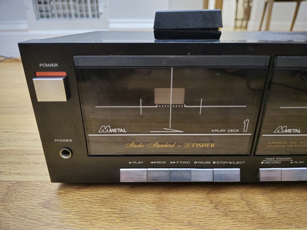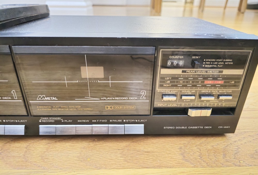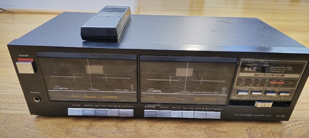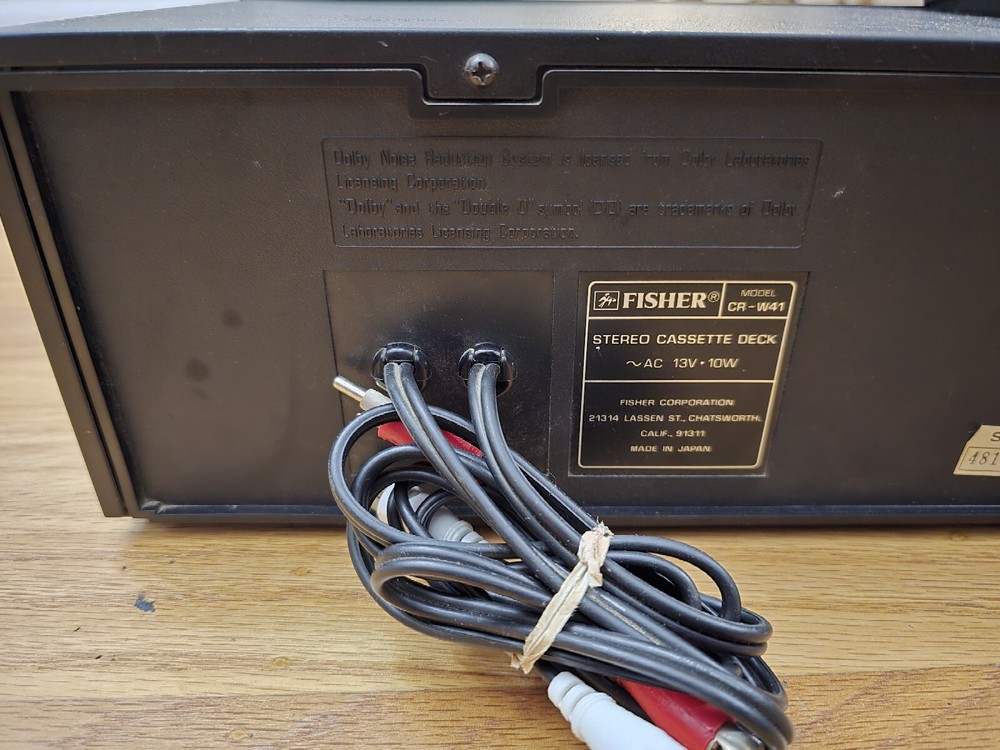 Fisher Stereo Double Cassette Deck CR-W41 Dolby Synchro Start Remote UNTESTED! Item is untested, as I don't have an adapter to plug it in. Comes with remote. Remote had corrosive batteries in it, so it may not work and/or may need a cleaning. Unit is clean and looks nice! None of the buttons are stuck and respond well. Both cassette decks open and close without issue. Could be a very good item at a budget price! Check pictures for detailed look. Feel free to ask for more pictures or if you have any questions. Multiple shipping options available. Choose the one that works best for you! Always shipped safe and secure!