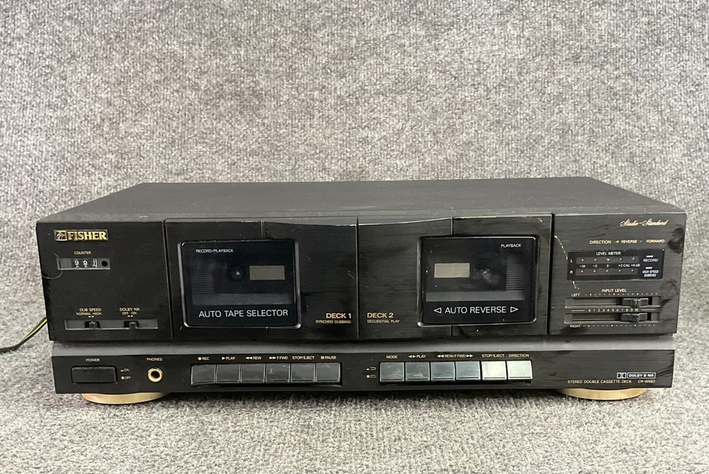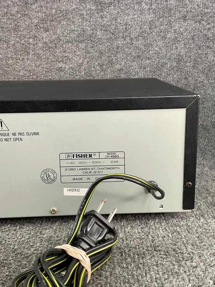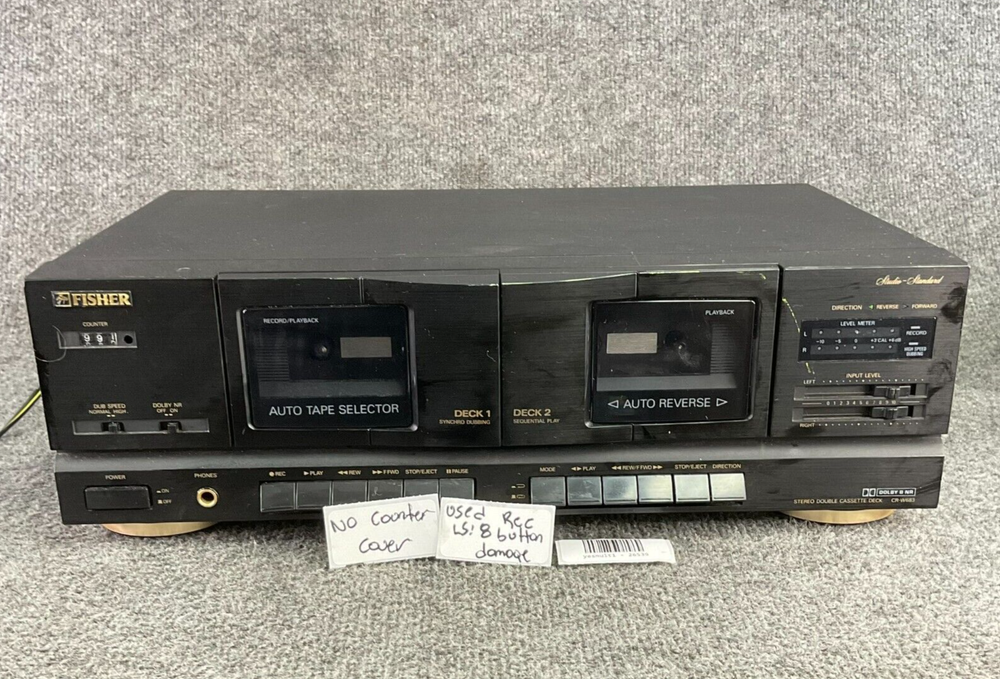 Fisher Stereo Double Cassette Deck CR-W683 Standard Recorder Player in Black Fisher Stereo Double Cassette Deck CR-W683 Standard Recorder Player in Black Product Detail • Brand : Fisher • Model : CR-W683 • Type : Cassette Deck Recorder Player • Weight : 8 lbs • Condition : This item is pre-owned and shows signs of wear and tear consistent with regular use. Any noticeable imperfections, such as scratches, scuffs, or minor dislocations, are detailed in the description or visible in the photos. Please review all images and information carefully before purchasing. • Important Note : Please note that the product has some scratches, the 'counter' cover is missing, and the 'rec' button is damaged due to its used condition (please see pictures 4, 5, and 6 carefully). Also, please note that the cassette deck does not come with a remote or any other accessories . This item has been tested and will be tested again before shipping to confirm it is in the same condition as listed. PLEASE NOTE: This item does not come with any accessories unless they are specifically mentioned in the listing description. It only comes with what is pictured. Please review the pictures before making a purchase. We value your business and encourage you to send a message if you have any issues or concerns I answer most questions instantly! Thank you! Customer satisfaction is our top priority. All products undergo quality checks to ensure they are in good condition when shipped to our customers. If a product is defective or damaged upon arrival, or if the wrong product is shipped, please understand that this is not intentional, as we have to pay for the shipping and the return. Please contact us immediately. “Returns are accepted within 30 days of the delivery date, and the item must be in its original new condition, with attached tags and wrap, and should not be worn or altered in any way. Otherwise, the sale is considered final. We cover all shipping costs for returns. Please contact us first if you have any problems, questions, or concerns.” We will be happy to resolve any issues you may have in a courteous and friendly manner. We appreciate your positive feedback and will do the same in return. Please do not leave negative feedback without first communicating with us. Please allow a maximum of 2 business days for us to respond