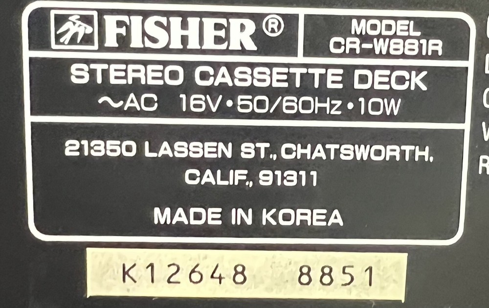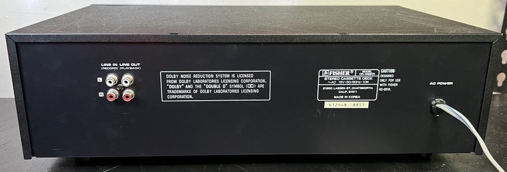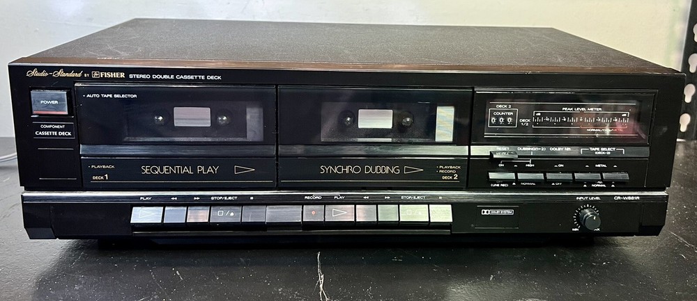 Fisher Stereo Double Cassette Deck CR-W881R. Untested. There is a unique two pole plug that looks like it connects to another component. I do not have the other components or end to the plug to test. Please see photos for item condition, and related, specifics.