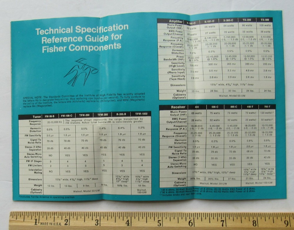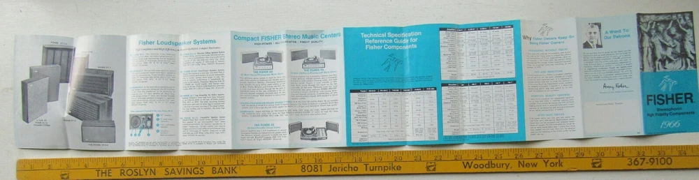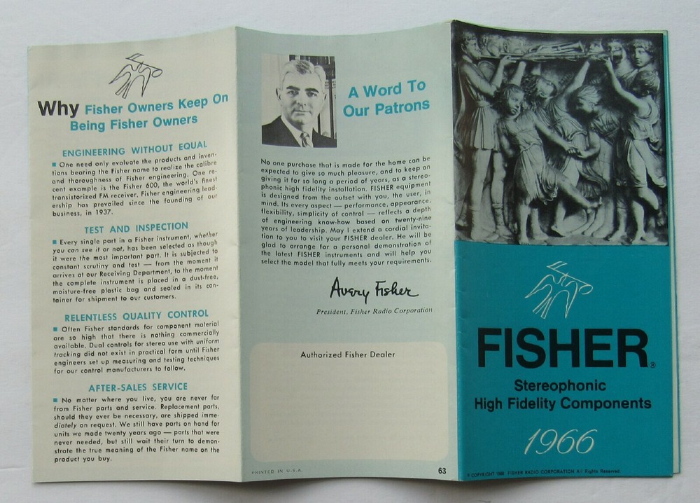 Fisher Stereophonic High Fidelity Components Sales Brochure 1966 12 page pullout brochure detailing many Fisher Models with specs View all pictures fm/271/b4 To get a better understanding of contents in this item please click onto picture's and use ebay's enlargement or zoom feature. INVENTORY BEING ADDED DAILY SO COME BACK OFTEN. ALWAYS WALK AWAY WITH A DEAL Only a fraction of our inventory is listed at auction: Alot more in our Store. To search all listings, enter your search term in the search box in the store home page then click Search. SHIPPING/DELIVERY and other INFORMATION: PAYMENT IS DUE WITHIN 5 DAYS OF ITEM CLOSING..IF THERE IS A PROBLEM PLEASE LET ME KNOW SINCE MY SYSTEM AUTOMATICLLY OPENS UP A UNPAID ITEM CASE AFTER 5 DAYS Please visit my online ebay store for similar items: LastCenturyEphemera Be sure to add me to your favorites list ! Buyer Pays Shipping . I use ebay checkout, however, please do not send any payment until you get my invoice in your email. We do combine shipping f o r multiple auctions when feasible.