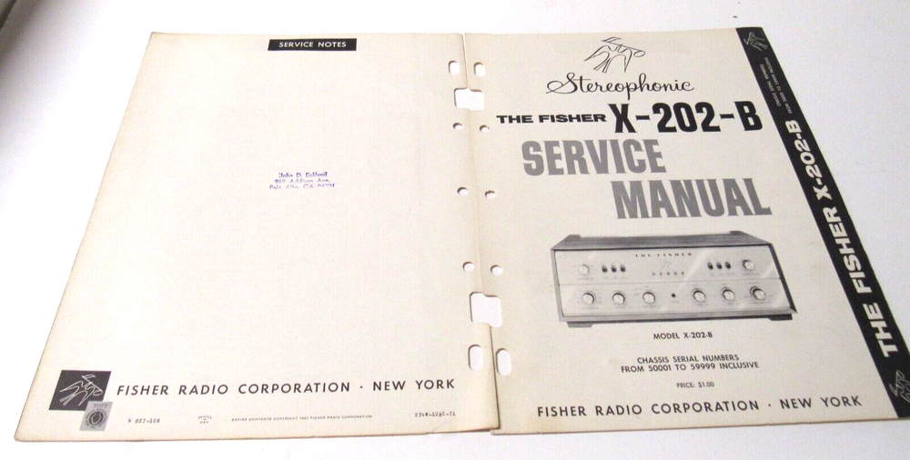 Fisher X-202-B Stereophonic Service Manual for Serial 50001-59999