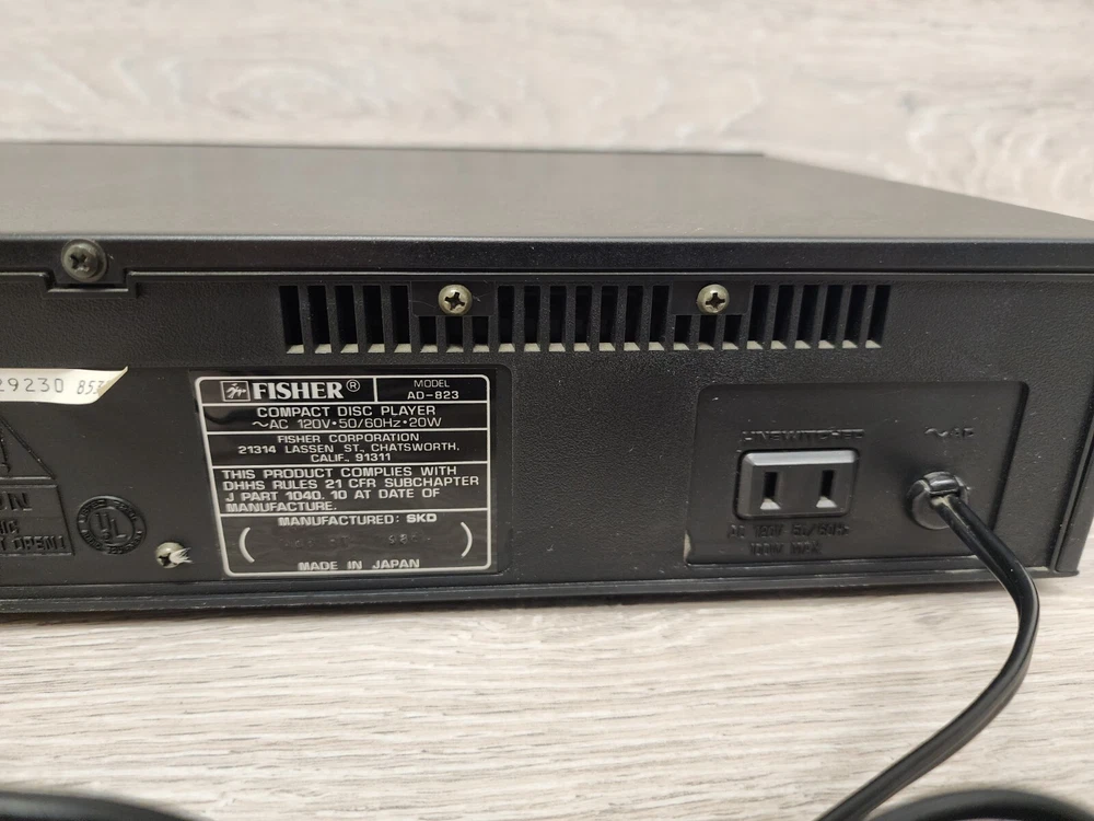 Fisher Studio Standard AD-823 CD Compact Disc Player AS IS For Parts Repair READ - PLEASE NOTE: Item is being sold AS IS, so **NO RETURNS WILL BE ACCEPTED!!** - Unit powers on and disc tray ejects and shuts, but when a CD is inserted, an "E" error message comes up on the screen and nothing plays. - No further testing has been done on unit. - Unit casing has some scratching/wear from use/storage. - No remote is included. - Power cable is included, no other cables are included! - From a smoke-free home - Ask any questions prior to purchasing - Please view all photos - Please read entire item condition and description before purchasing - Returns: Item is being sold AS IS, so **NO RETURNS WILL BE ACCEPTED!!** - International Buyers: You are responsible for any customs or import fees. These charges are not covered in your shipping costs. First Class International Shipping does NOT provide tracking information. 8/1/24