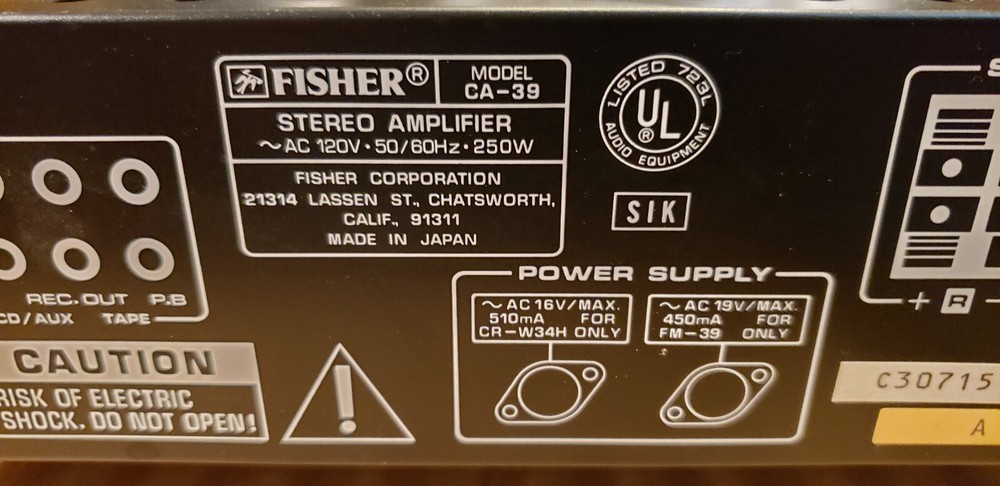 Fisher Studio Standard CA-39 Integrated Stereo Amplifier Amp w Graphic Equalizer...