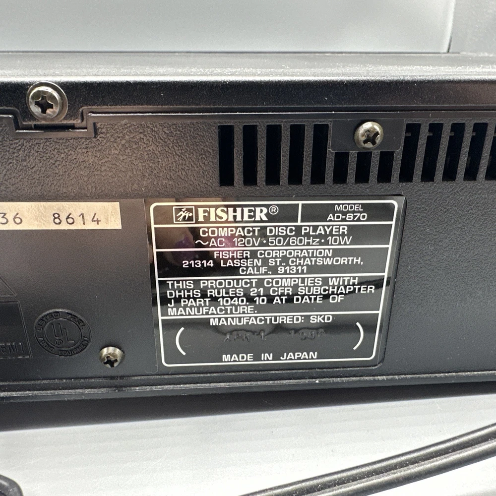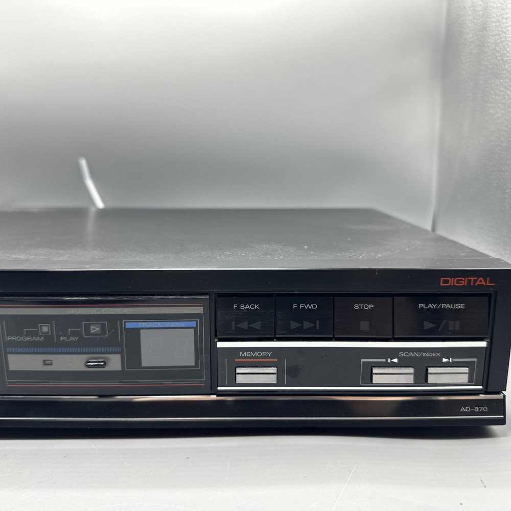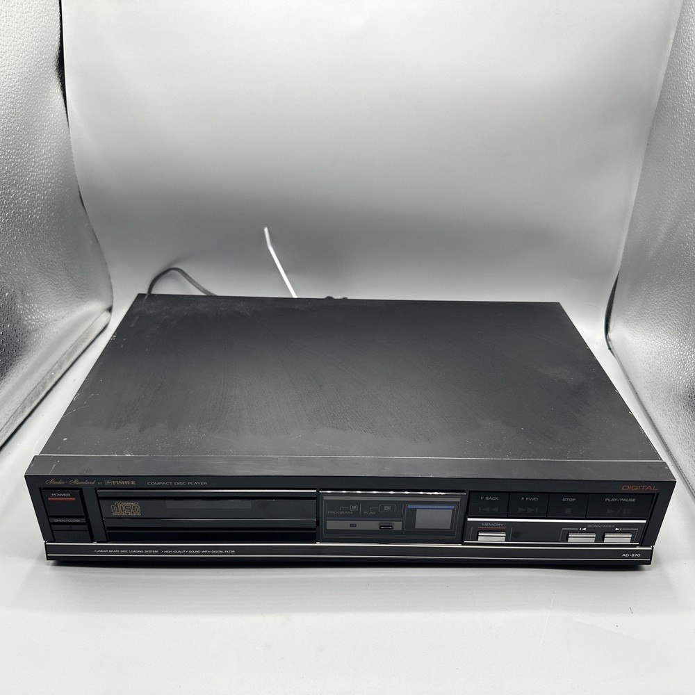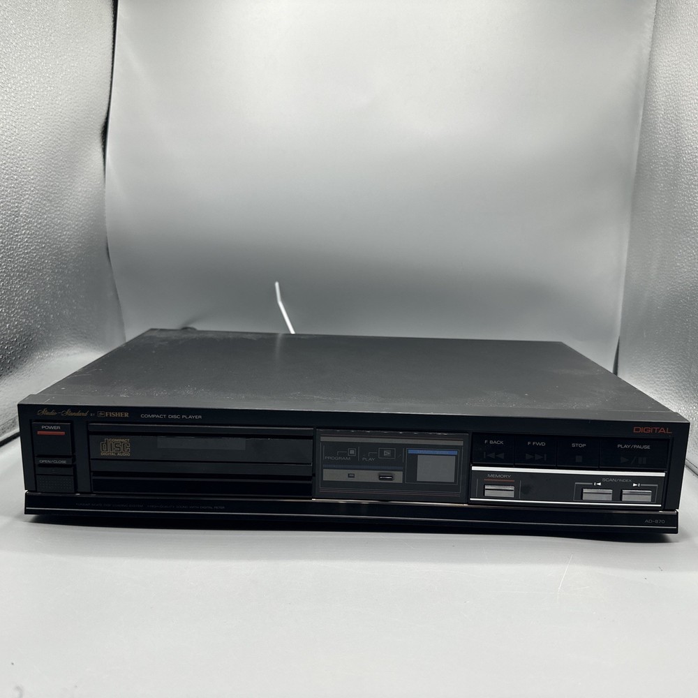 Elevate your audio experience with the Fisher Studio Standard Digital CD Compact Disc Player, model AD-870. Crafted with precision in Japan, this compact disc player offers a sleek black design that will complement any home entertainment setup. It features an intuitive graphic display for easy operation and delivers stereo sound quality through its L/R RCA outputs, ensuring a rich audio rendition of your favorite CDs. The unit, manufactured in 1980, supports a single CD changer capacity and is thoughtfully designed without memory type inclusion, keeping the focus on pure audio performance. With a robust 10 W RMS power output and an item weight of 8 lbs, this Fisher compact disc player is a solid addition to your audio equipment collection.