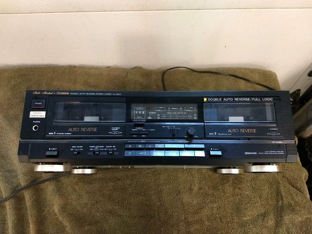 Offering a Fisher Studio Standard Double Auto Reverse Stereo Cassette Deck CR-W880. This powers up, it rewinds & fast forwards on both sides but I could not get it to play. I do not know if I hooked it up right so I am selling as parts but could possibly work. Please look the photos over for a complete description & email with any questions. Please visit my store, Pietig’s Vintage, to see my other items.
