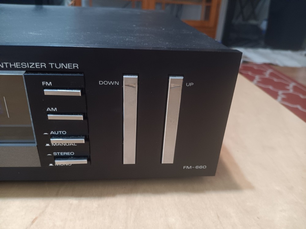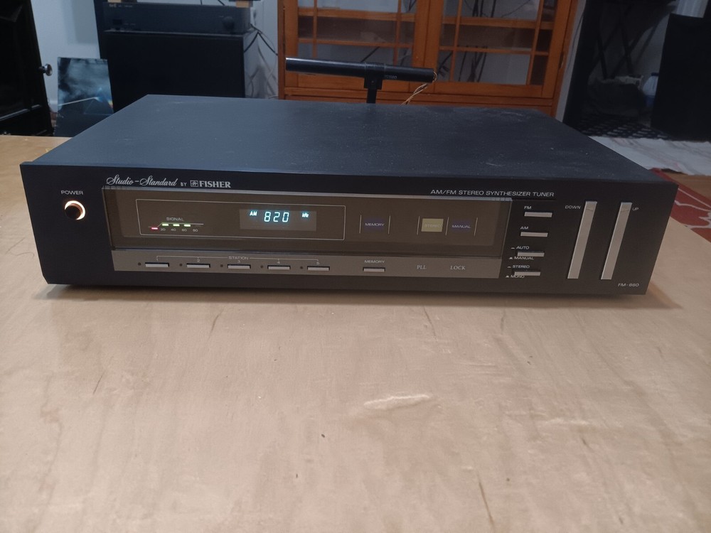 Fisher Studio Standard FM - 660 AM/FM Stereo Tuner Made In Japan . This Tuner has been tested, and is in good working condition. The only thing is the stereo and manual indicator lights are out . When you go to the auto-manual button it works fine, except the Power indicator light goes out when you hit the auto mode. I don't know what's causing this, but it doesn't effect anything other than the light going off. When you put it back in manual tuning mode, the power light goes back on. Please note due to the age, I am selling as is. Thanks