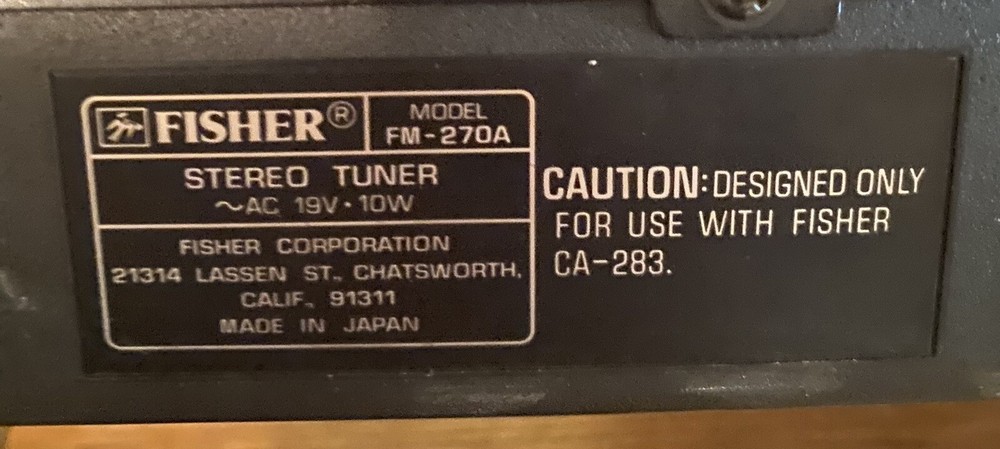 Fisher Studio Standard FM-270 AM/FM Shelf Stereo Tuner-10 W-Japan Untested...