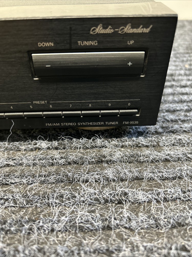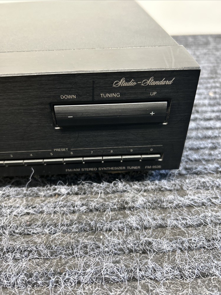 Has been tested!! Introducing the Fisher Studio Standard FM-9535 FM/AM Stereo Synthesizer Tuner, a high-quality unit that is perfect for any home audio setup. This unit supports FM and AM modes, with a sleek black color and AM/FM band capabilities. The audio outputs are stereo L/R RCA, and the unit is designed with a digital feature set. The Fisher Studio Standard FM-9535 is a reliable and efficient tuner that is perfect for any radio enthusiast. This unit is a great addition to any home audio component collection and is sure to provide you with a top-notch listening experience.
