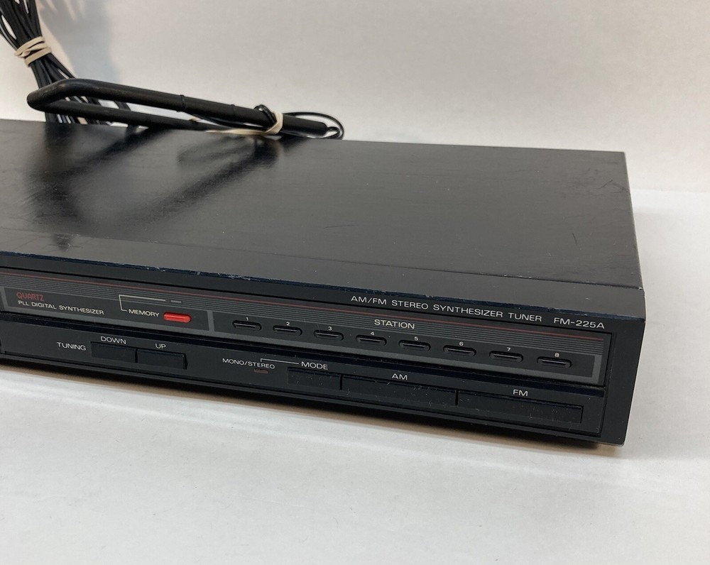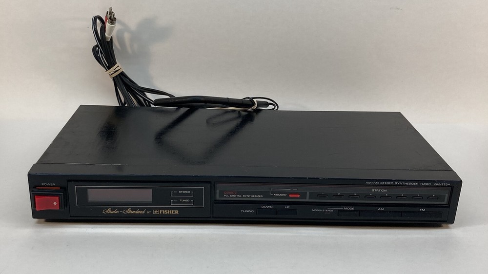 As is, as pictured. Does not turn on. For parts. Fisher Studio- Standard Fm-225a Am/fm Stereo Synthesizer Tuner *For Parts*.