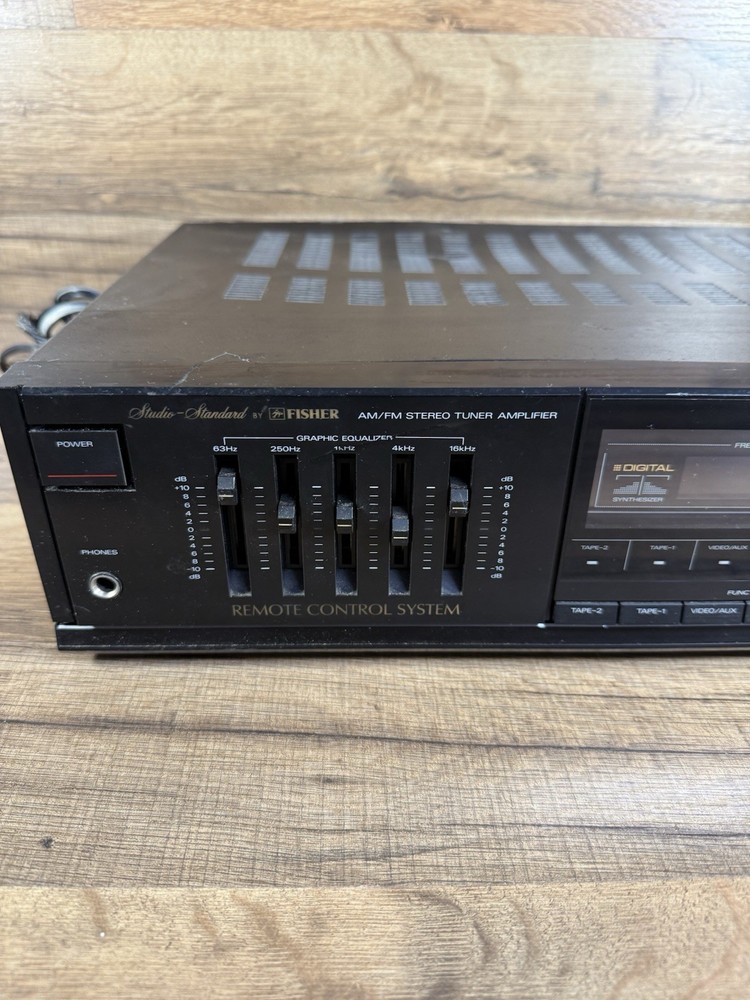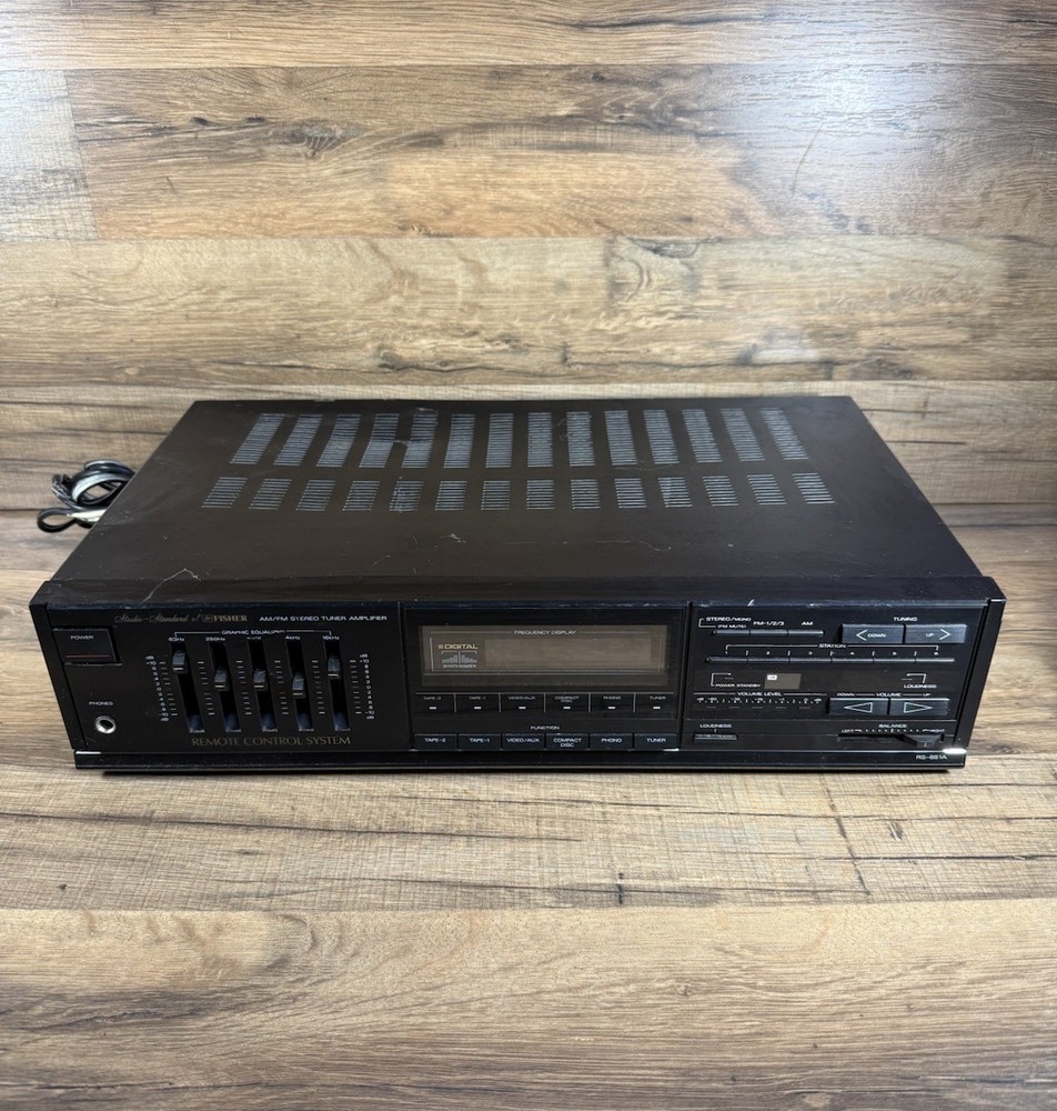 The Fisher Studio Standard RS-881a AM/FM Stereo Receiver is a vintage audio device from the 1980s, manufactured in Korea. It features AM and FM stereo capabilities, but does not come with an antenna. This receiver is a part of the Fisher brand collection and is a standard model that has not been modified. Perfect for collectors of vintage electronics or those looking to add a retro touch to their audio setup.