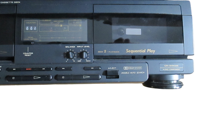 Type: double compact cassette deck Track System: 4-track, 2-channel stereo Tape Speed: 4.75, 9.5 cm/s Heads: 1 x playback, 1 x record/playback, 1 x erase Motor: 2 x DC governor Tape Type: type I, CrO2, Metal Noise Reduction: B Frequency Response: 40Hz to 15kHz (Metal tape) Signal to Noise Ratio: 62dB (dolby B) Wow and Flutter: 0.06% Total Harmonic Distortion: 1.5% Input: 100mV (line) Output: 0.5V (line) Dimensions: 440 x 132 x 278mm Weight: 5.2kg