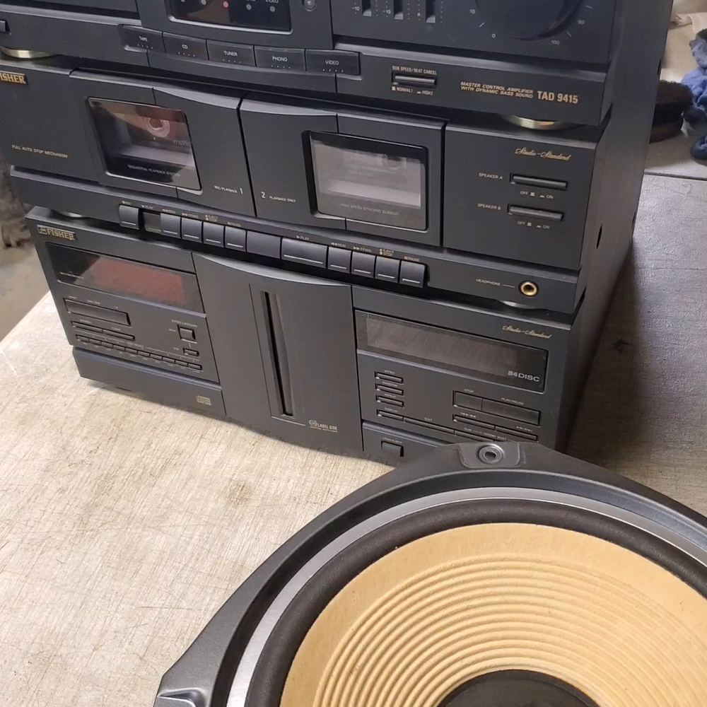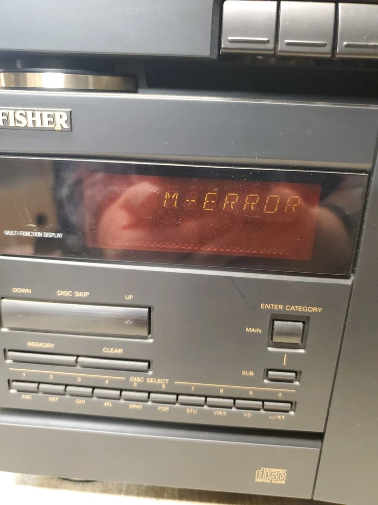 Fisher TAD-9415 Component Stereo Receiver Radio Cassette Player Parts Repair. Non functioning cd player. Has M error. Tuner and cassette work fine. Selling as is, no returns for parts or repair. (L31)
