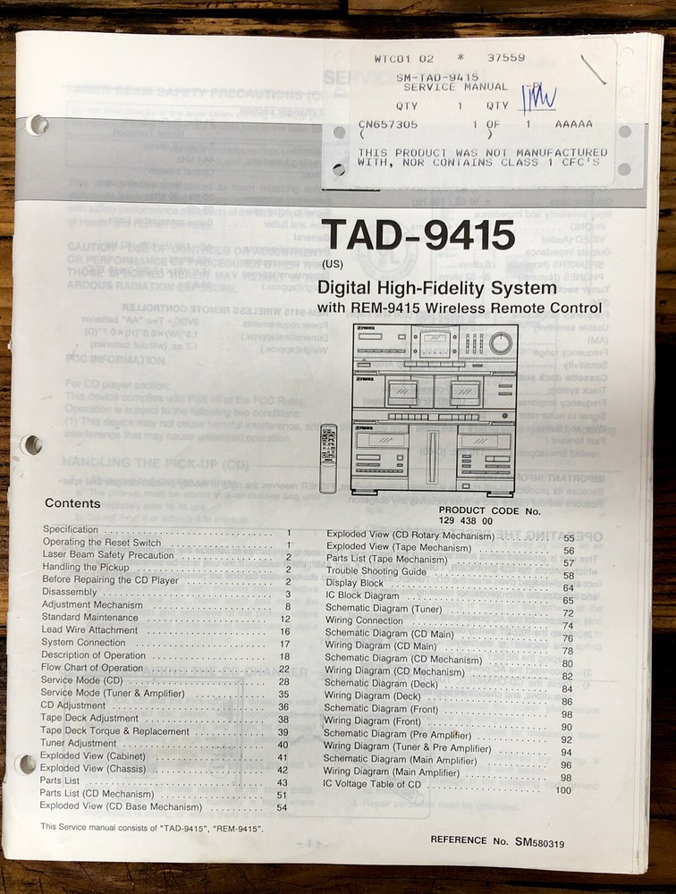 Fisher TAD-9415 Stereo Service Manual Original Factory Guide