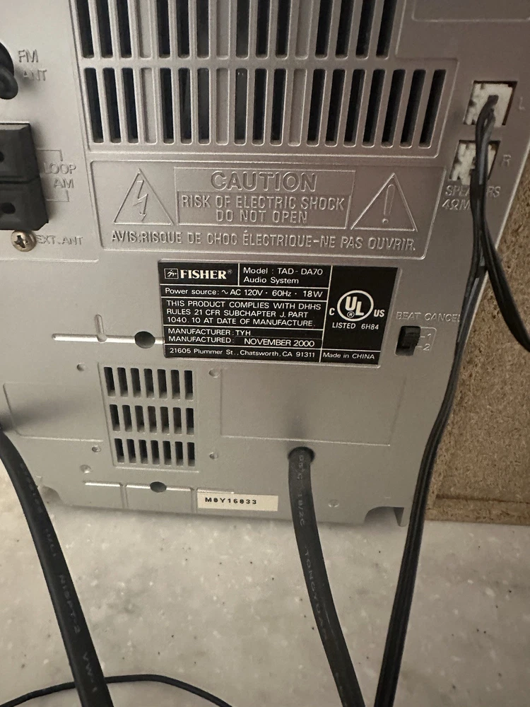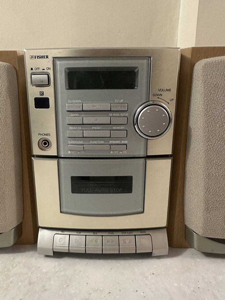 Fisher Audio System – Model TAD-DA70 Classic compact stereo system with radio, CD player, and cassette deck , complete with two matching speakers . Fully tested and working . Features: CD player (tested and working) Cassette deck (tested and working) AM/FM radio tuner Includes 2 original Fisher speakers Clear sound and responsive controls Compact all-in-one system, perfect for small spaces Great for retro audio setups or everyday use. Free shipping included. Ships quickly and securely from the U.S. Feel free to message with any questions!
