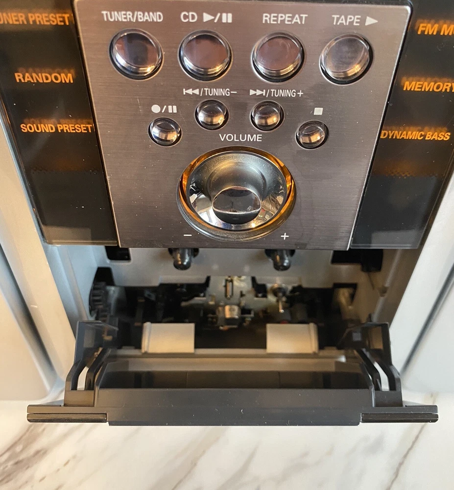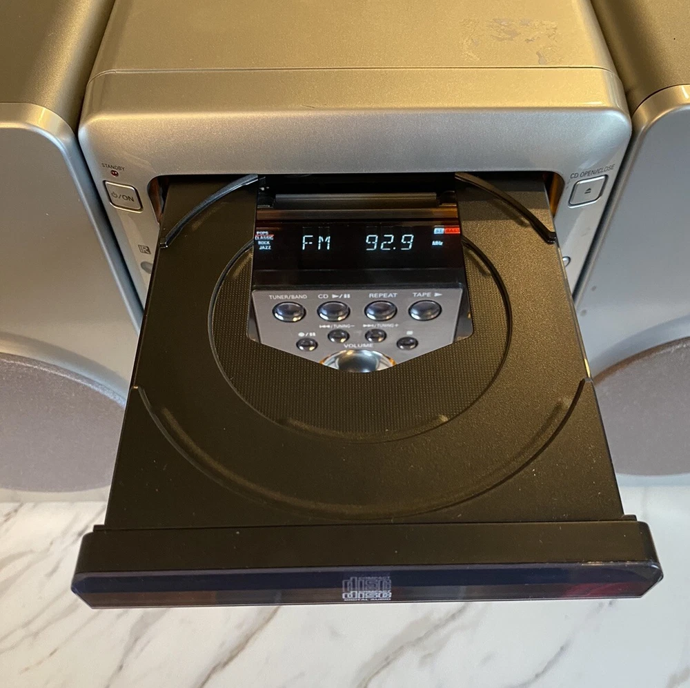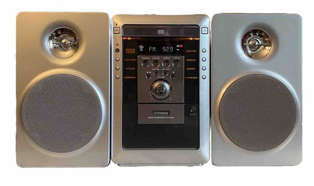 This Fisher TAD-MM5000 Audio System shelf stereo comes with a pair of STM-MM5000 speakers, offering a high-quality sound experience for your home audio needs. The brand Fisher is known for its durable and reliable products, and this model is no exception. With its compact and sleek design, it's perfect for any home entertainment setup. The TAD-MM5000 features a variety of aspects, including a stereo sound system, a compact design, and a durable and reliable build. It's ideal for anyone looking for a high-quality audio system for their home. The speakers provide a clear and crisp sound, making it perfect for TV, radio, or music.
