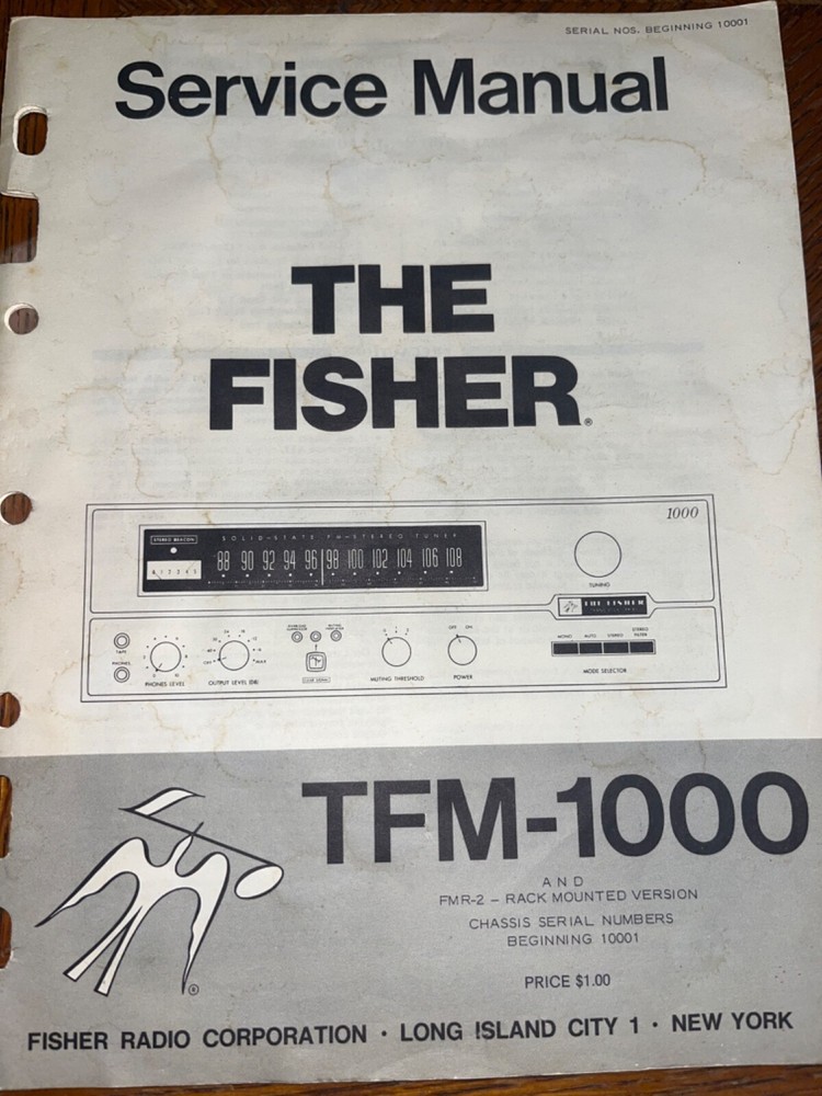 I am selling an Original Fisher TFM-1000 Stereo System Service Manual.. Item was used at a repair center .. Item will be shipped USPS Media Mail..
