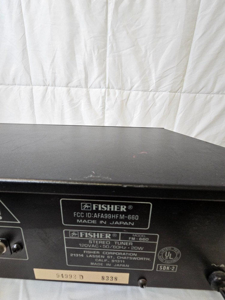 This Fisher FM-660 Analog Stereo Tuner is a vintage gem that has been tested and confirmed to be in working condition. It's designed with a Quartz Synthesized AM/FM Stereo system that guarantees excellent sound quality. Made in Japan, this unit belongs to the category of Vintage Tuners & Tube Tuners, Vintage Audio & Video, Vintage Electronics, and Consumer Electronics. It's a one-of-a-kind unit that has stood the test of time and is ready to be enjoyed by its new owner.
