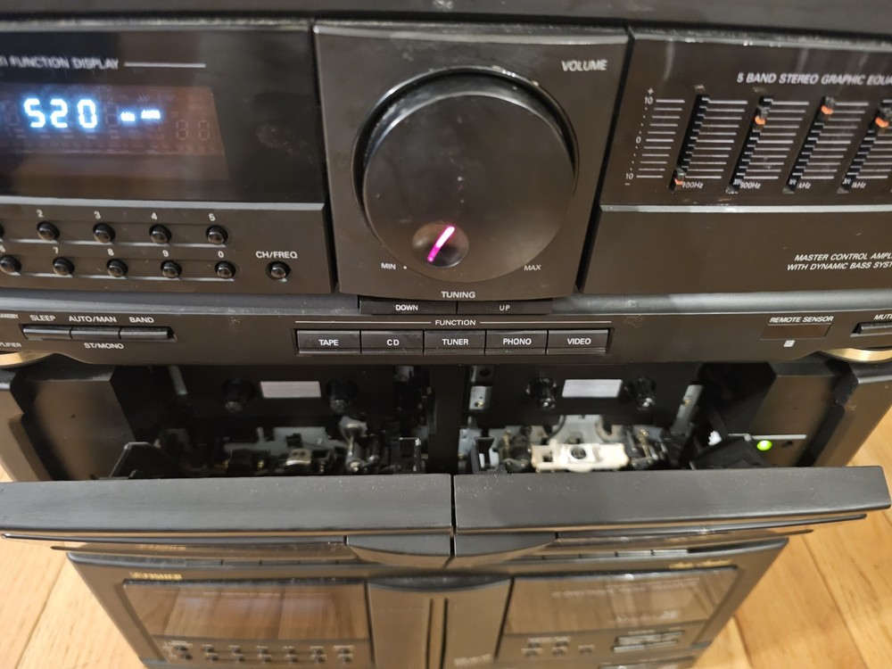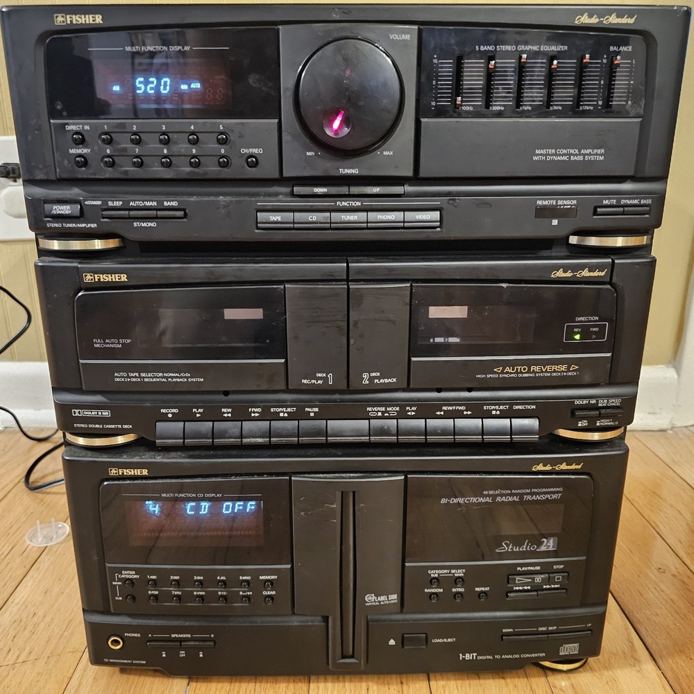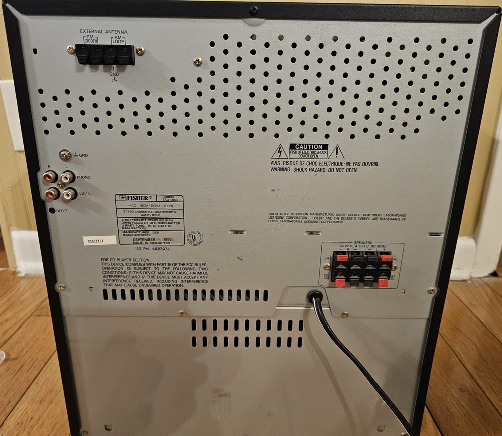The Fisher TAD 993 Stereo System is a vintage home audio device from 1993 that includes a CD player, cassette tape player, and AM/FM radio. This compact and shelf stereo, manufactured in Singapore, features a black color design and a range of features to enhance your listening experience. With the brand's reputation for quality and reliability, this stereo system is a great addition for those looking to enjoy their favorite music in a variety of formats.