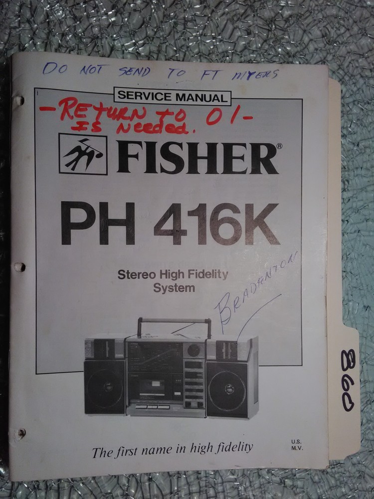 Fisher PH 416K Service Manual Original Repair Guide for Stereo Boombox Radio