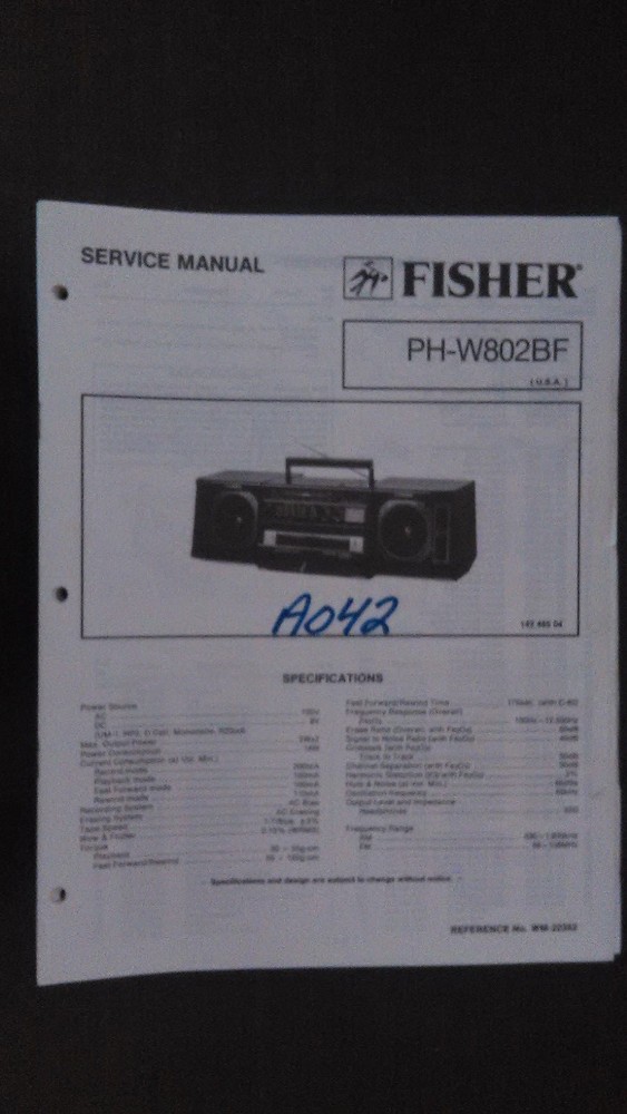 Fisher PH-W802 BF Service Manual Original Repair Guide for Stereo Boombox Tape Radio
