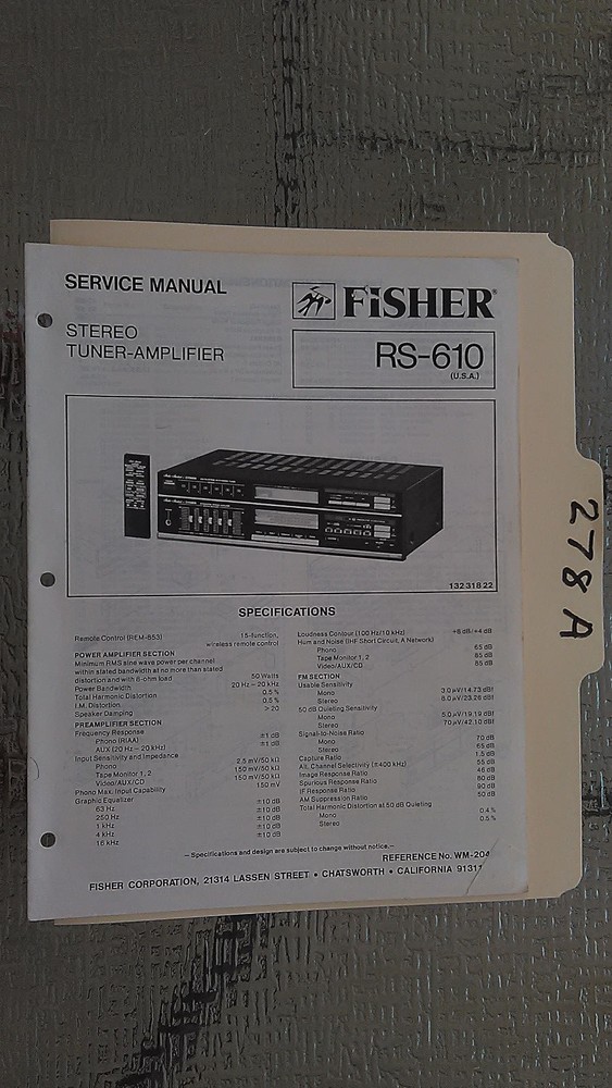 Fisher RS-610 Original Service Manual for Stereo Receiver & Tuner Repair