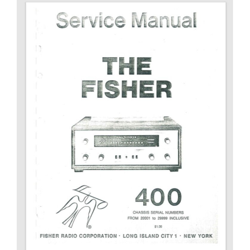 Fisher stereo 400 Service Manual 10 pages New reproduction of service manual Glossy protective covers front and back Heavy card stock front and back covers. Comb binding 8 1/2 X 11" format Made in the...