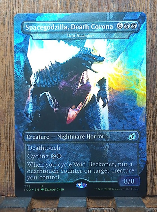 This Spacegodzilla foil card is a stunning collector's piece—vibrant colors, crisp detailing, and a powerful presence on the battlefield. The Void Beckoner effect adds serious strategy to any deck. Fast shipping and great packaging from the seller! A must-have for Ikoria fans.