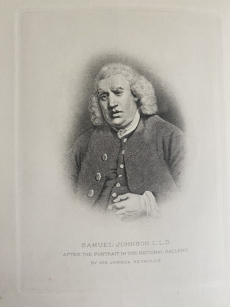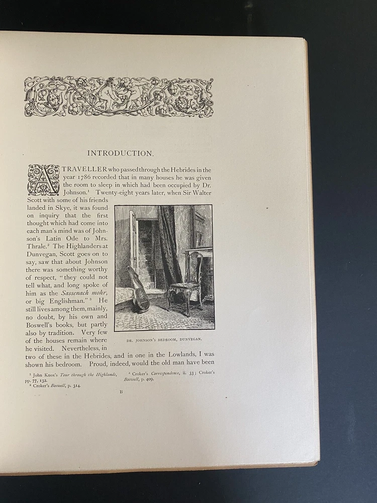 Footsteps of Dr. Johnson (Scotland). George Birkbeck Hill. With illustrations by Launcelot Speed. Sampson, Low, Marston, Searle & Rivington. London, 1890. Quarter roan, 318 pp. Bookplate removed from ...