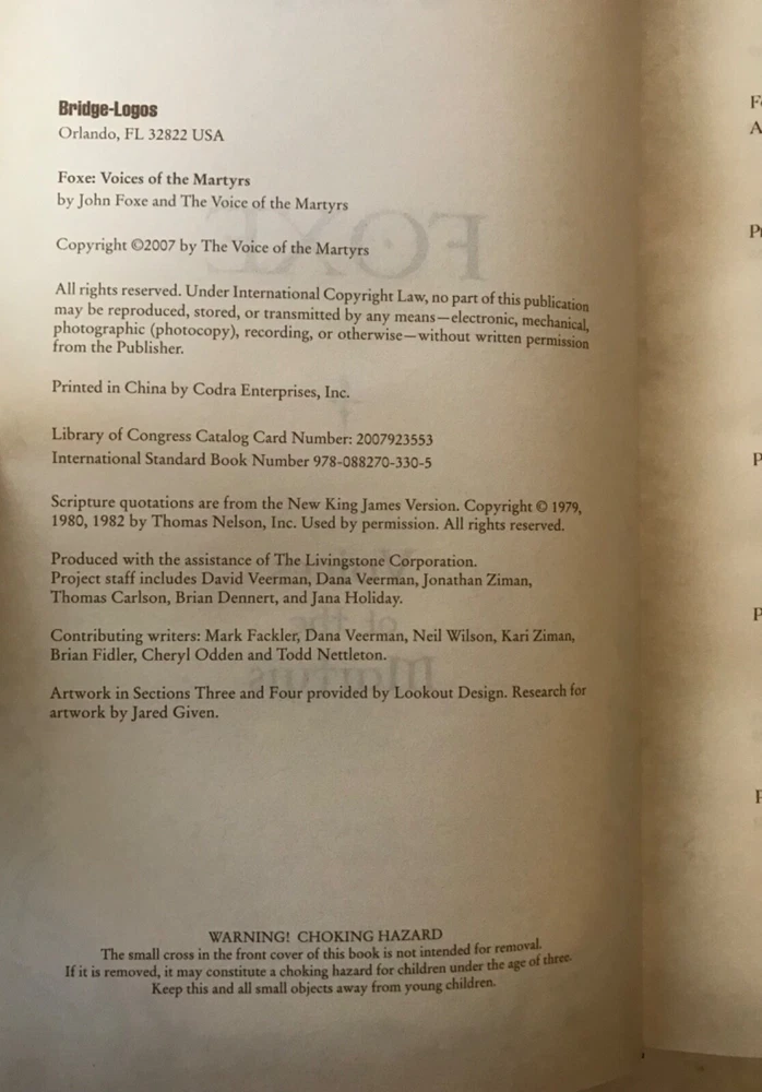 | Book Title | Foxe : 33 A. D. to Today |