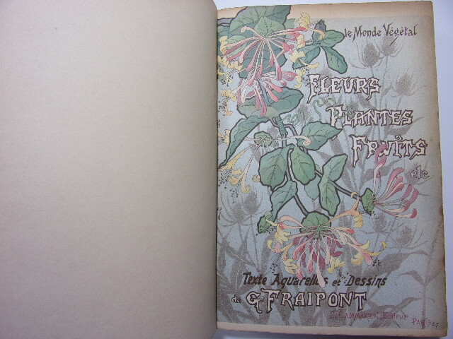 Fraipont. The Plant World. Flowers, Plants, Fruits. Watercolors Colors. EO The description of this item has been automatically translated. If you have any questions, please feel free to contact us. The plant world. Flowers, plants, fruits G. Fraipont text, drawings and watercolor, with a preface by André Theuriet Original edition Adorned with 9 colored inset boards and many in-text drawings. Gustave Fraipont, born in Brussels in 1849, aquarelist and engraver painter, posterist, exhibited at the Paris Salon in 1882. Large in4, 280x190, half leather connected, friction, golden head slice, very good interior condition, 812pp. Color covers of preserved origins. Paris, Ernest Flammarion, ss dates 1899 The plant world. Flowers, plants, fruits G. Fraipont text, drawings and watercolor, with a preface by André Theuriet Original edition Adorned with 9 colored inset boards and many in-text drawings. Gustave Fraipont, born in Brussels in 1849, aquarelist and engraver painter, posterist, exhibited at the Paris Salon in 1882. Large in4, 280x190, half leather connected, friction, golden head slice, very good interior condition, 812pp. Color covers of preserved origins. Paris, Ernest Flammarion, ss dates 1899 Recommended products Provided by Alphonse Daudet. Tartarin on the Alps. Watercolors colors by Guillaume 1885 View item Astronomy. Astronomy Dictionary for the Use of the People of the World 1852. EO View item Curiosa / Denise. Aurélien Scholl Watercolors by Grivaz 1884 View item Montorgueil, illustrated by JOB. France - The Cantinière - The Three Colors View item Maurice Genevoix. The Empty Hands. Original Wood in Colors of the Breton View item Sahib. The frigate The Misunderstood, journey around the World View item Tunisia. Text and watercolors by Charles Lallemand. 1892 View item Animals. Gervais & Lemahout. The garden of plants. 11 colored plates. 1842 View item Reliure Cuir Langue Français Auteur G. Fraipont Époque XIXème Sujet Ouvrages de référence Nom Fleurs, plantes, fruits