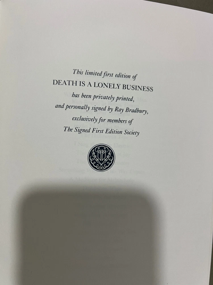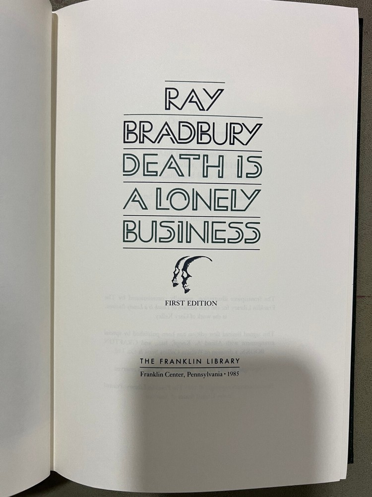 Death is a Lonely Business - Ray Bradbury SIGNED Franklin Library 1st Edition Very Good Plus Condition ! New Books get listed daily !!! 100s of Easton Press and Franklin Library books available!! All books get cleaned with a leather cleaner to remove any dust, odor and restore the beauty of leather!! Combined Shipping Discount: USA buyers - every book $1 off International combined shipping: 1 or 2 books - $45 3 or 4 books - $75 5 + books $17 per book 10+ books $13 per book WE SHIP DAILY!! RETURNS: Hassle-Free 30-days return policy and we pay for a return !! Check our Inventory (Link to eBay Store): http://stores.ebay.com/EastonFranklinBooks