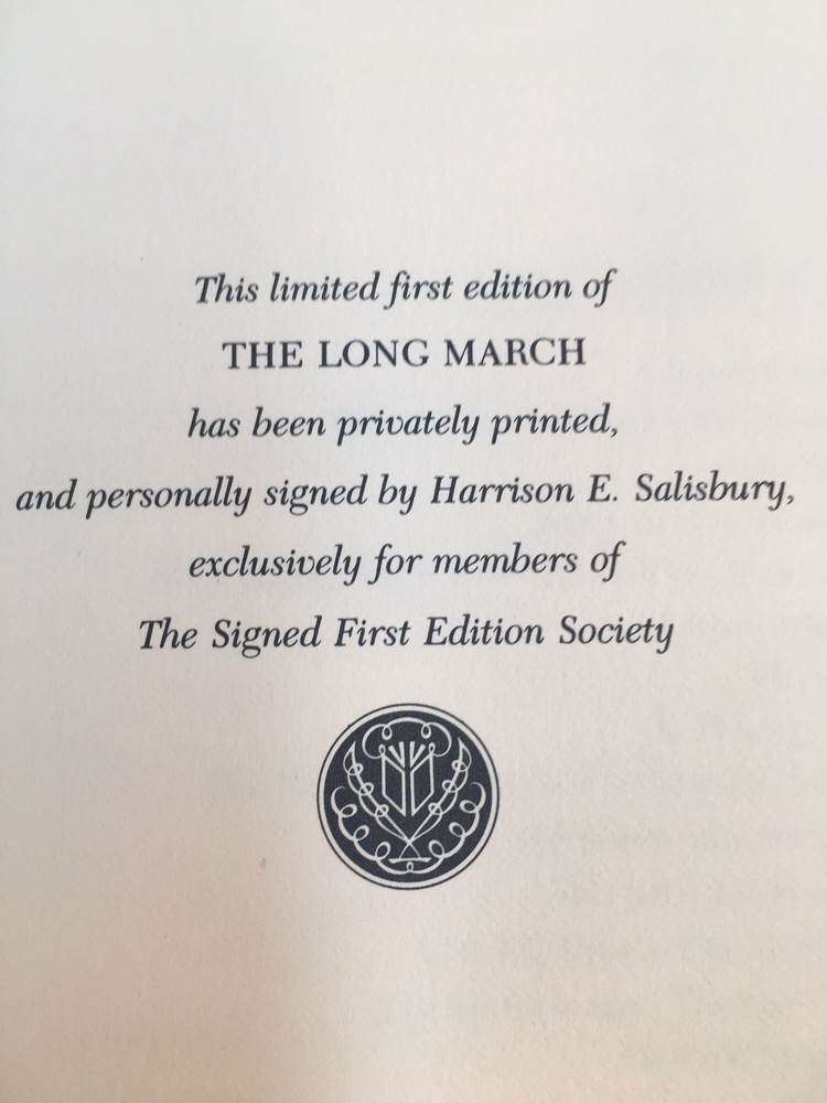 This stunning Franklin Library edition is a true collector's gem! The signed first edition of Salisbury's *The Long March* feels luxurious with its black leather binding, gold gilding, and Smyth-sewn craftsmanship. Holding a piece of history signed by the legendary journalist himself makes it even more special. The vivid frontispiece and acid-free pages ensure this masterpiece will last for generations. A must-have for anyone passionate about Chinese revolutionary history or rare signed editions. The quality and condition are impeccable—absolutely worth adding to any serious collection!