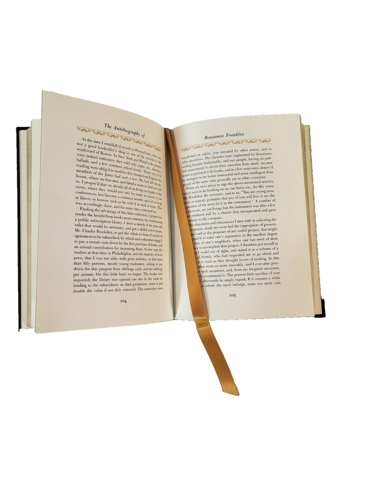 Antiquarian & Collectible Details Franklin Library The Autobiography of Benjamin Franklin Gilded Hardback Leather. Payment eBay's Payment Policies Shipping We ship A.S.A.P., Monday - Saturday if possible. Handling time is 3 days maximum due to weekends, holidays, and/ or weather. We use standard mail services: USPS Ground Advantag e ™ (2-5 business days), USPS Media Mail ® (2-8). Please feel free to send us a message if you have any questions! - Mak'n'Mike